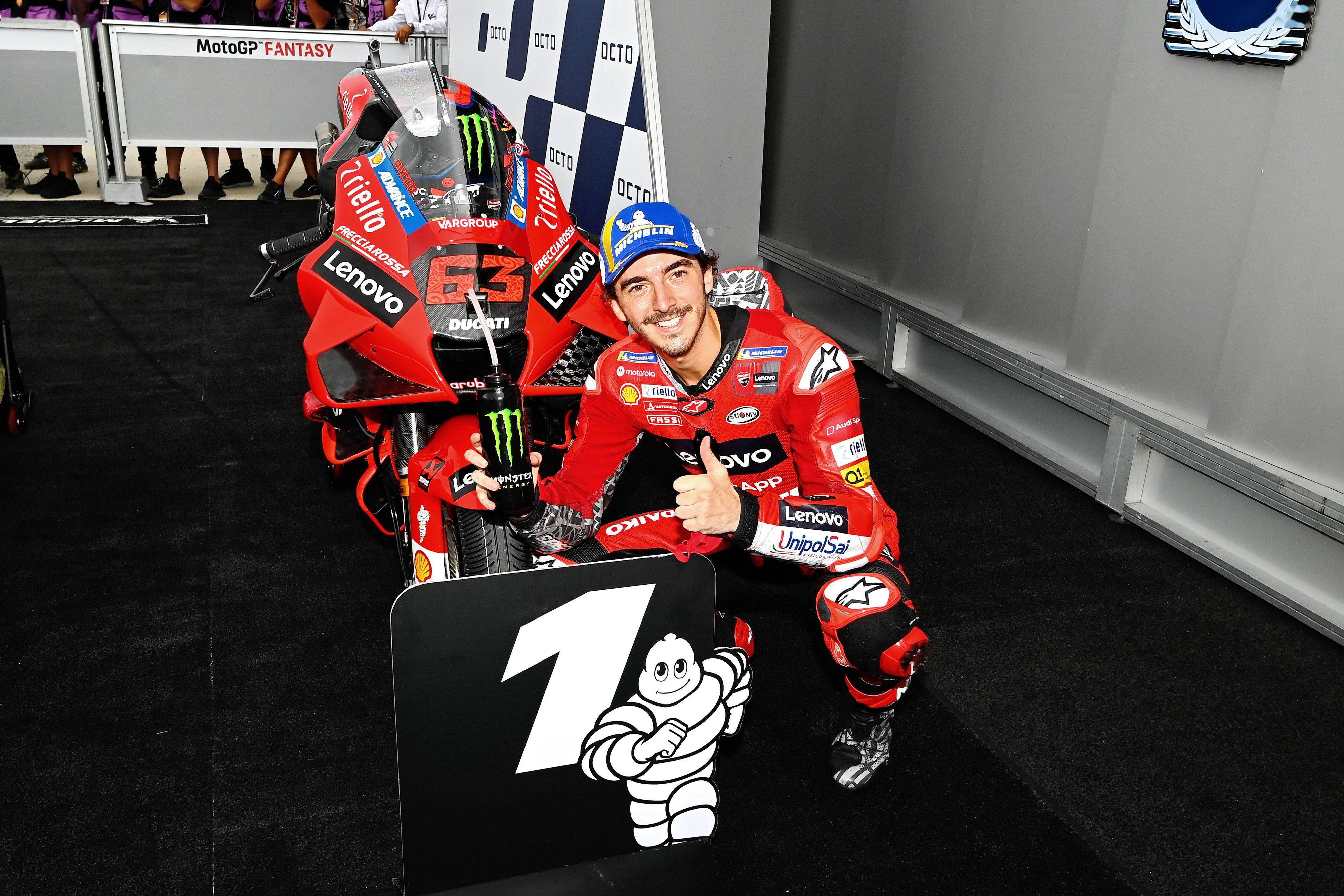 MotoGP 級別,賽前的 Q2 排位賽,駕駛 63 號車的巴納亞(Francesco Bagnaia)跑出了破圈速記錄的 1 分 31.065 秒,連續(xù)兩站、獲得了排頭位出賽。這也是他今年、第三次排頭位發(fā)車。