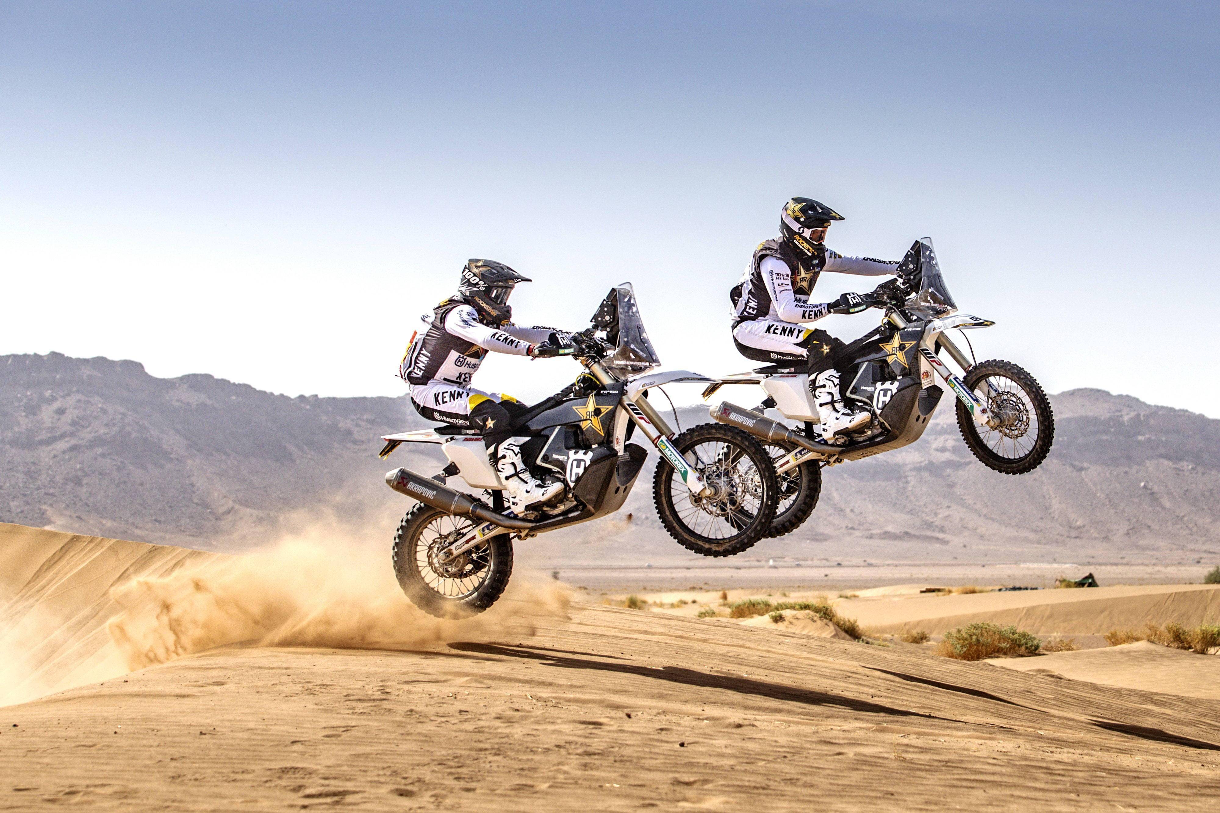 下面的圖片,胡斯瓦那的 2022 拉力工廠賽車(chē) FR450 和兩位車(chē)手,來(lái)自美國(guó)的豪斯(Skyler Howes)以及來(lái)自阿根廷的 L. 貝納維迪斯(Luciano Benavides)。