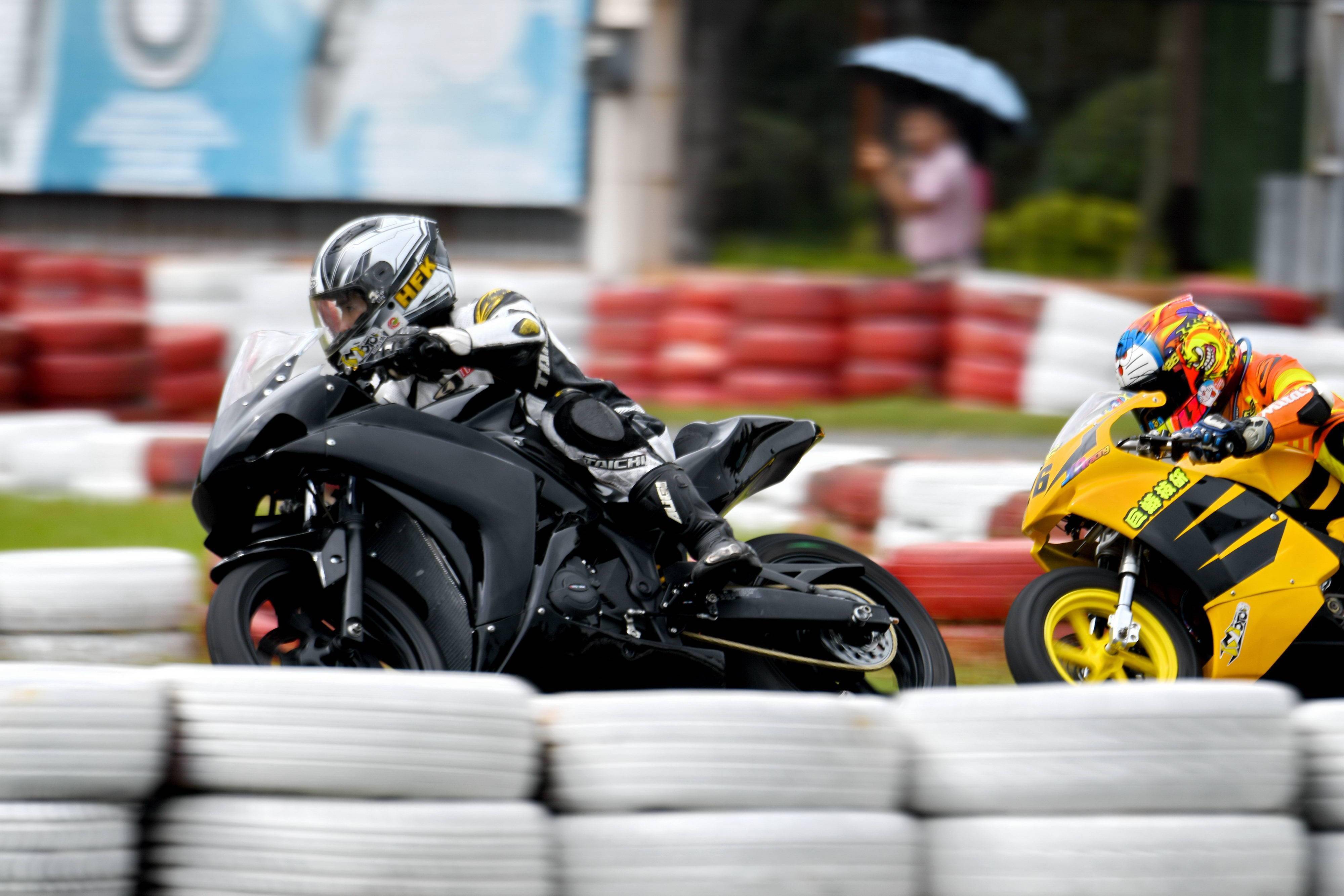 下面的圖片,十月 12 日、臺風前夕,多位車手在三水森林公園賽車場內進行練習以及調試賽車。