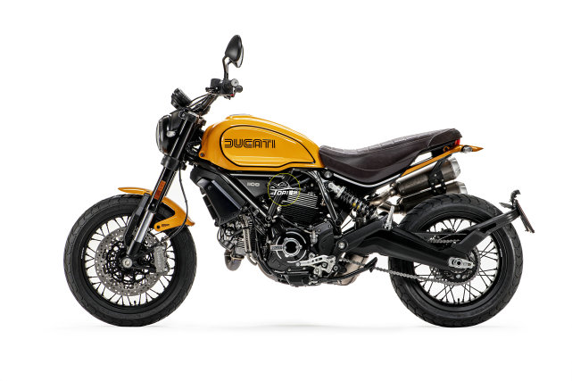 復(fù)古風(fēng)格的車型是新款Scrambler 1100 Tribute Pro,以紀(jì)念杜卡迪風(fēng)冷雙缸50周年。Tribute借鑒了70年代的杜卡迪設(shè)計元素,如雙線字體標(biāo)志、圓形后視鏡、棕色坐墊和受750 Sport啟發(fā)的 Giallo Ocra黃色涂裝。