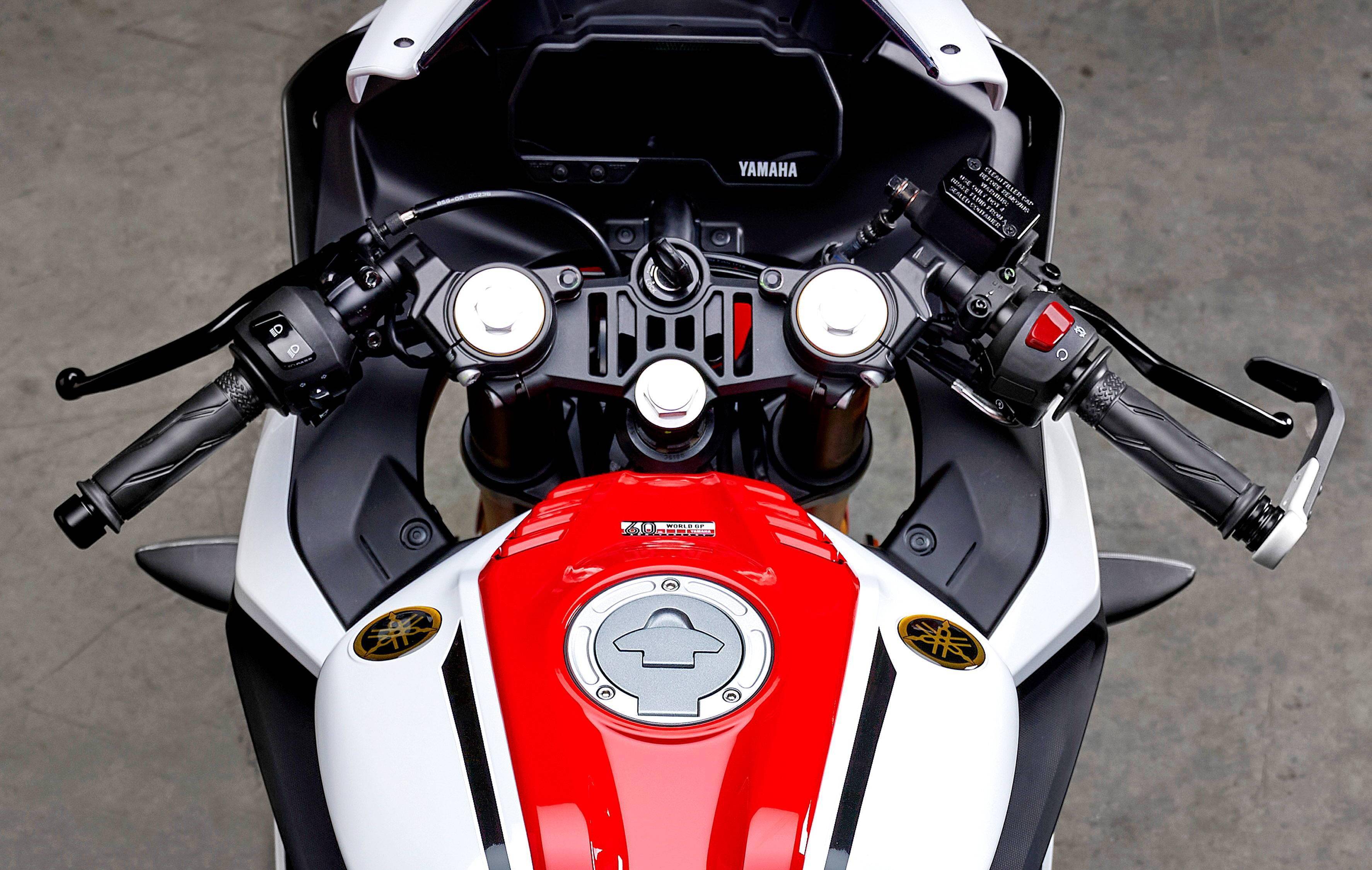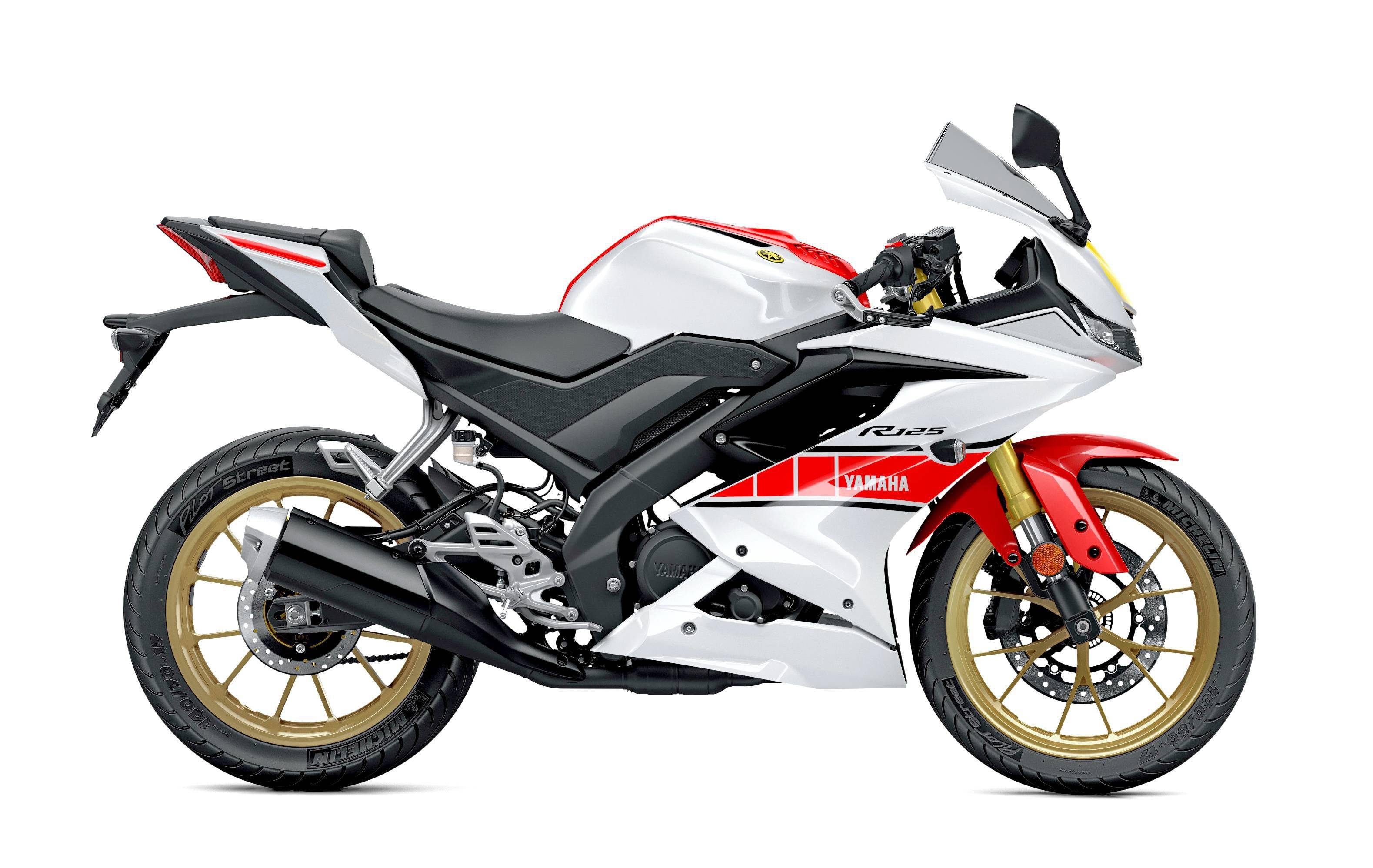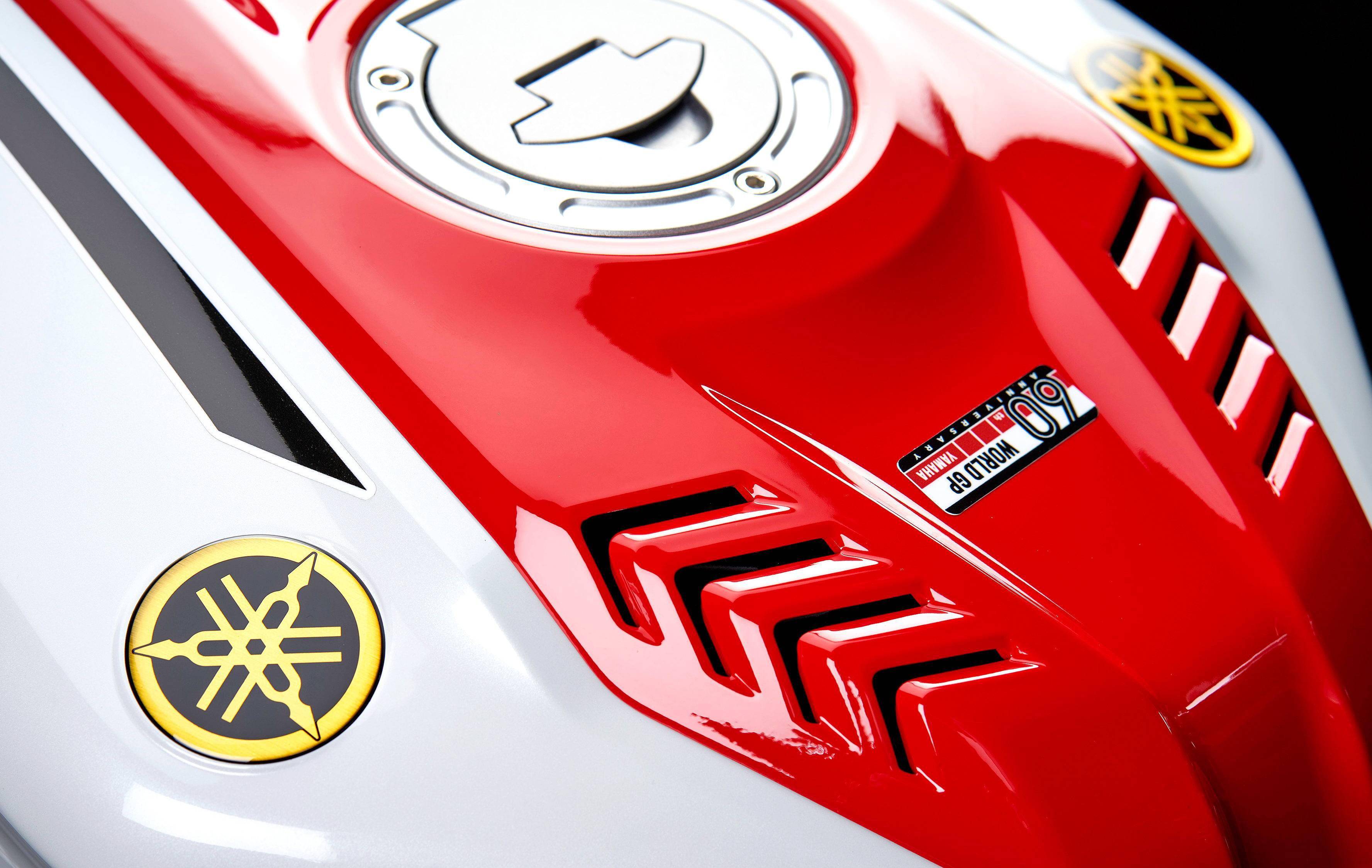 與標(biāo)準(zhǔn)款相比,同時(shí)發(fā)布的 2022' YZF-R125 世界錦標(biāo)賽參賽六十周年紀(jì)念版采用了有著 Yamaha 賽車傳統(tǒng)印象的紅白色圖案,金色的前叉筒和前后輪框、Yamaha 音叉標(biāo)志等。