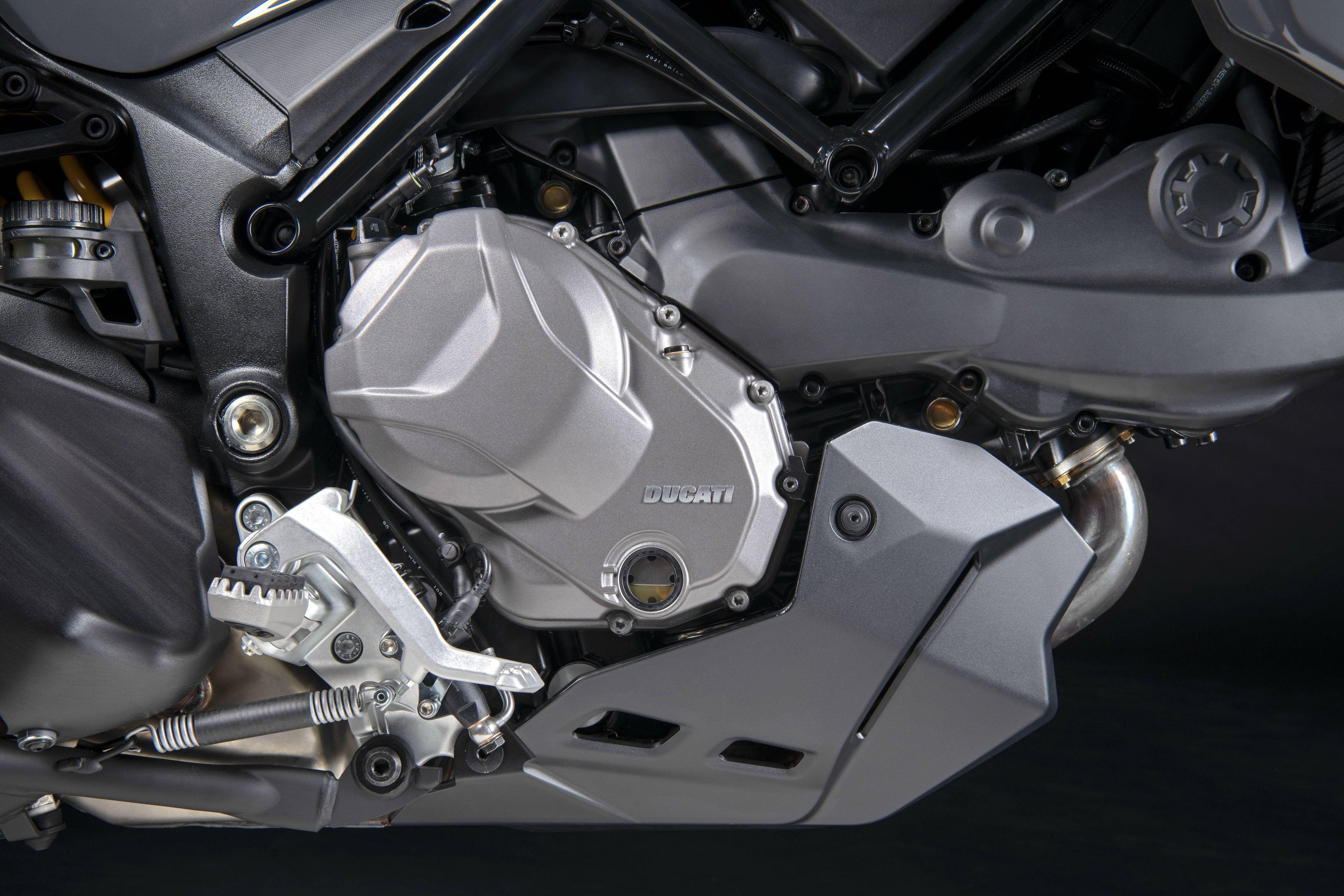 新的 Multistrada V2 系列沿用了原來 950 平臺的水冷四沖程 L 型兩氣缸 Testastretta 發(fā)動機,排氣量 937 cc,最大動力輸出 83 kw(約 113 匹)。在基礎數(shù)據(jù)上,新的 Multistrada V2 系列與現(xiàn)行的 Multistrada 950 并沒有差異,但新的 V2 系列,發(fā)動機內部、變速齒輪箱等組件經(jīng)過了更新,換裝了八片式的離合器,從而優(yōu)化了騎行過程中的各項操作。