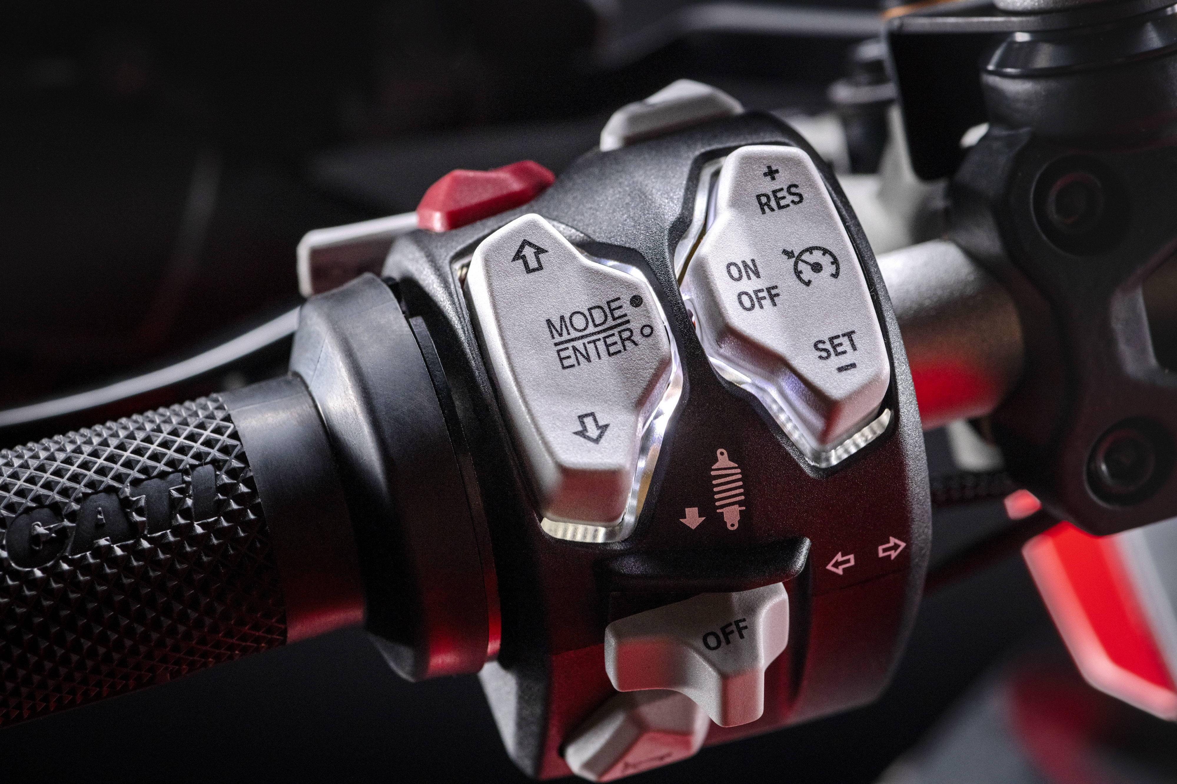 與標準款相比,Multistrada V2S 增配了 Skyhook Suspension Evo 電子懸掛系統(tǒng)、DQS 快速換檔系統(tǒng)、巡航控制、可根據(jù)車輛傾側度而優(yōu)化道路照明的 DCL(Ducati Cornering Lights,杜卡迪轉向燈光)燈光系統(tǒng)等,并有著更多的原廠 S 版專用選裝件供客戶選購。