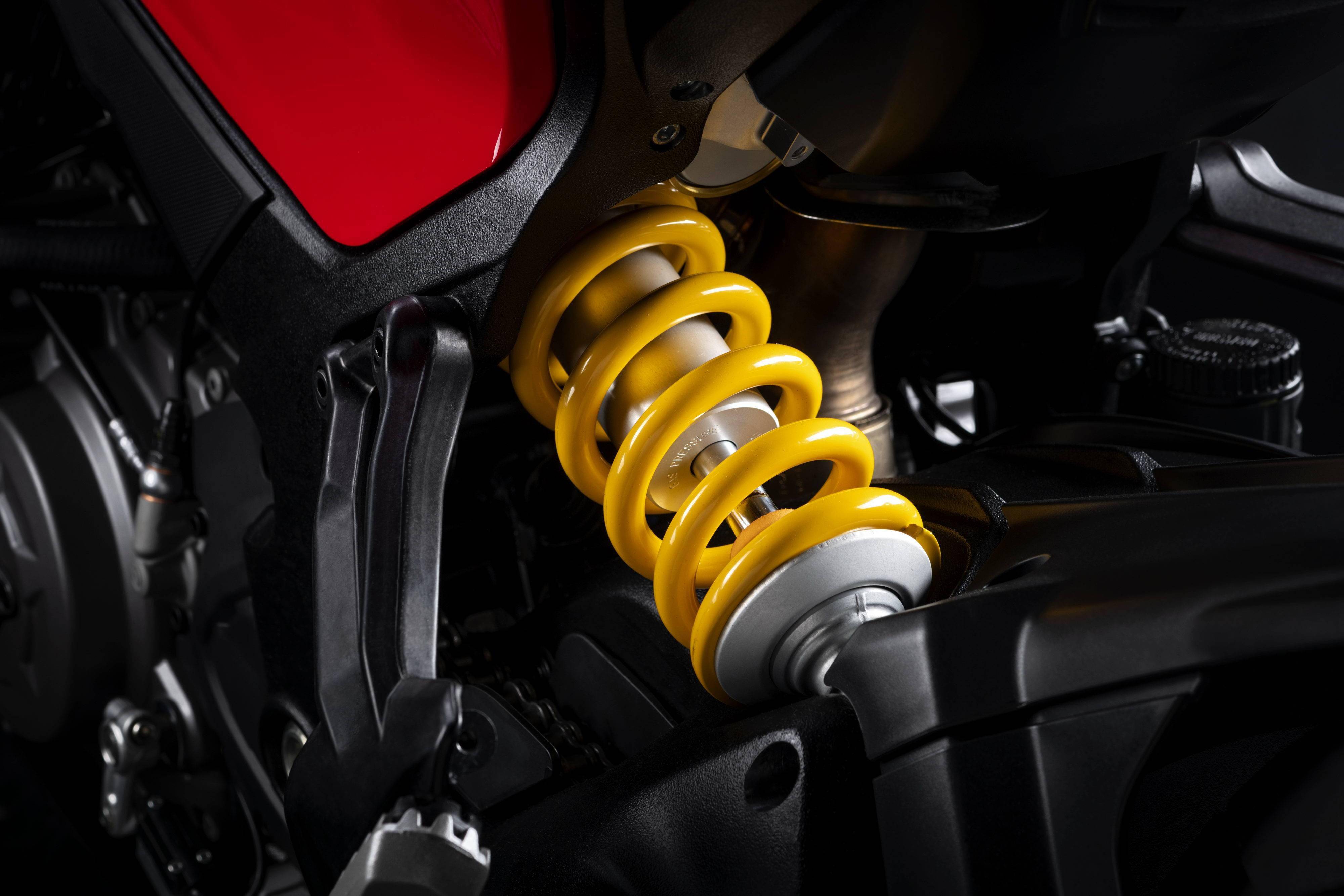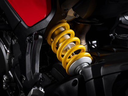 車體沿用一副鋼管式的車架,車身經(jīng)過重新設計、更符合人體工程學,新設計的鞍座、更低的座位高度(從 950 版本的 840 mm 降低至現(xiàn)在的 830 mm,原廠同時提供進一步將座高降低至 790 mm 的鞍座和后懸掛組件),為車輛靜止或者是低速駕駛的狀態(tài)下,讓駕駛員有著更大的信心。此外,全車的重量也比 2021 版本降低了 5 公斤。