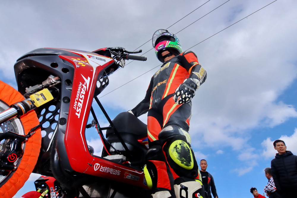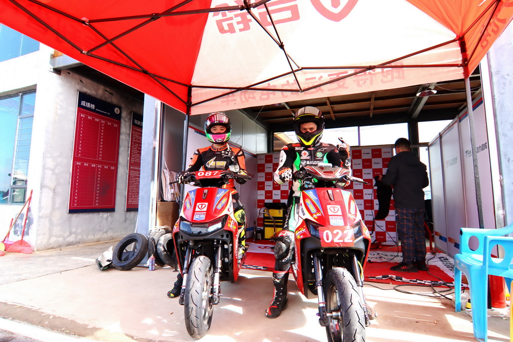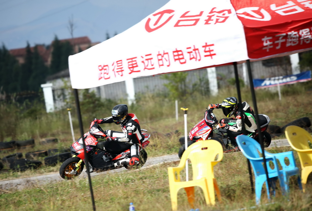 下面的圖片,電動車和摩托車多個組別,在周末時候的比賽現(xiàn)場。