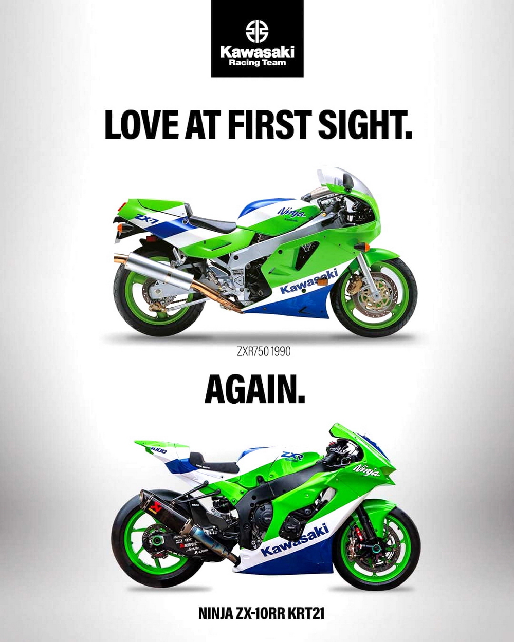 KRT 車隊(duì)的兩位車手,雷亞(Jonathan Rea)和洛維斯(Alex Lowes),其 Ninja ZX-10R 賽車分別采用來自 Kawasaki 在上世紀(jì)不同經(jīng)典車型的外觀圖案。
