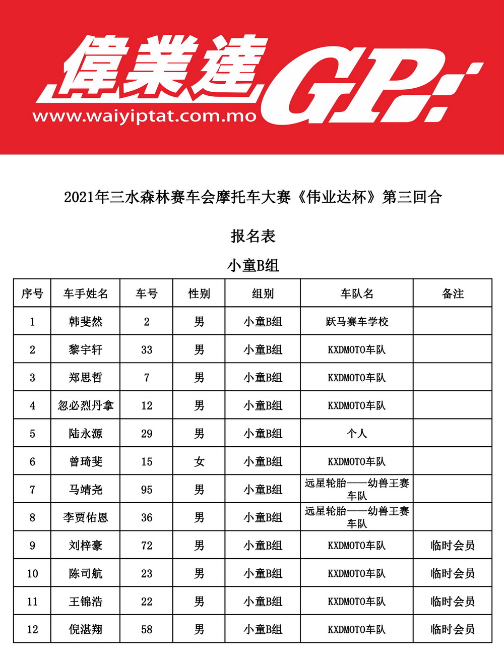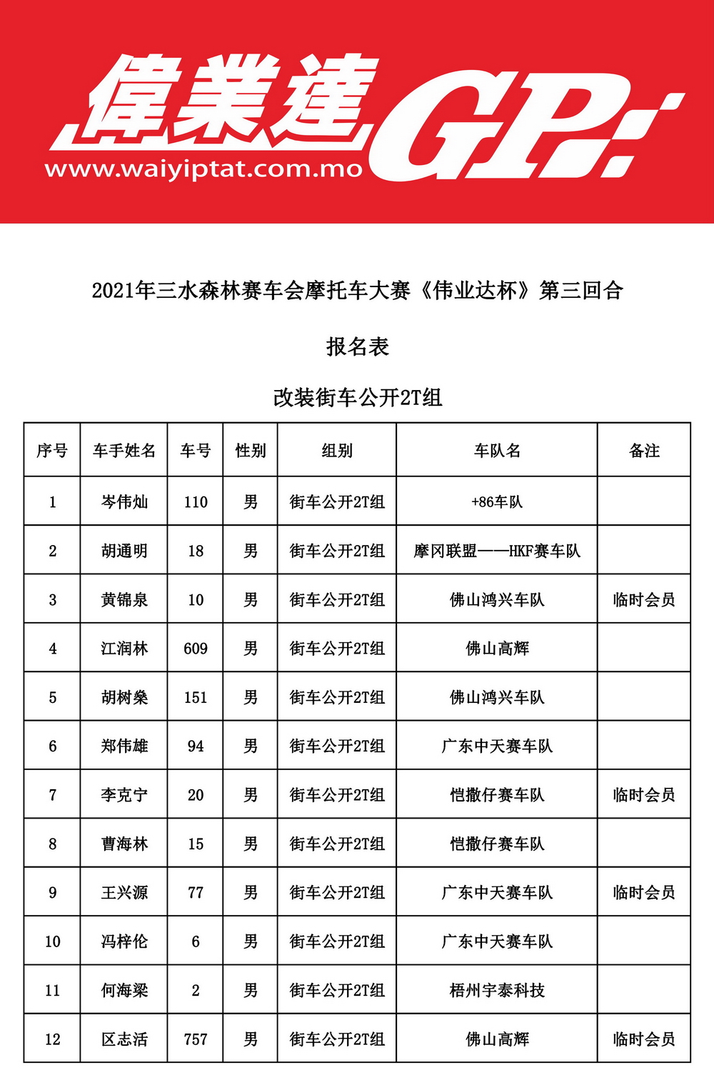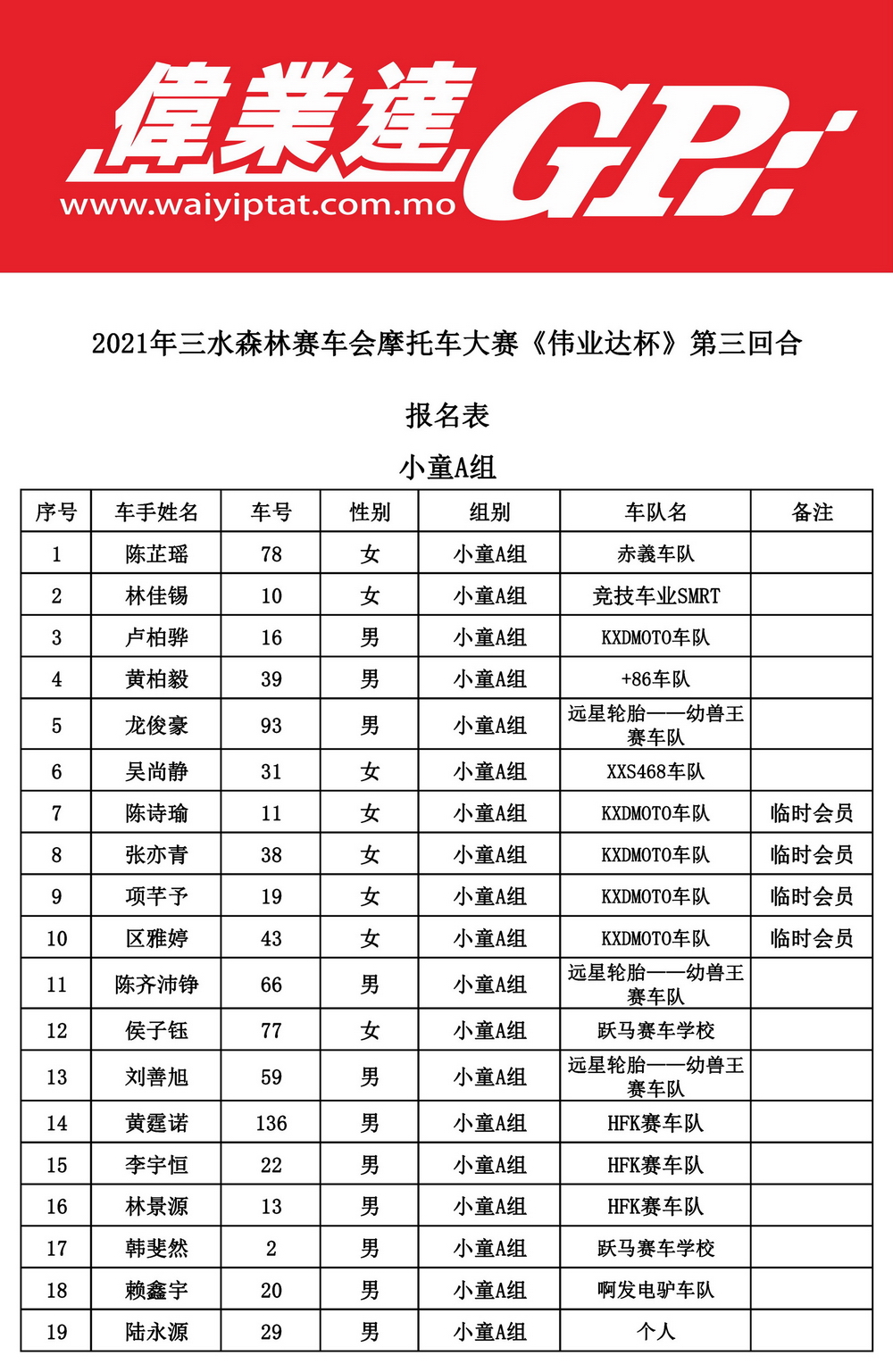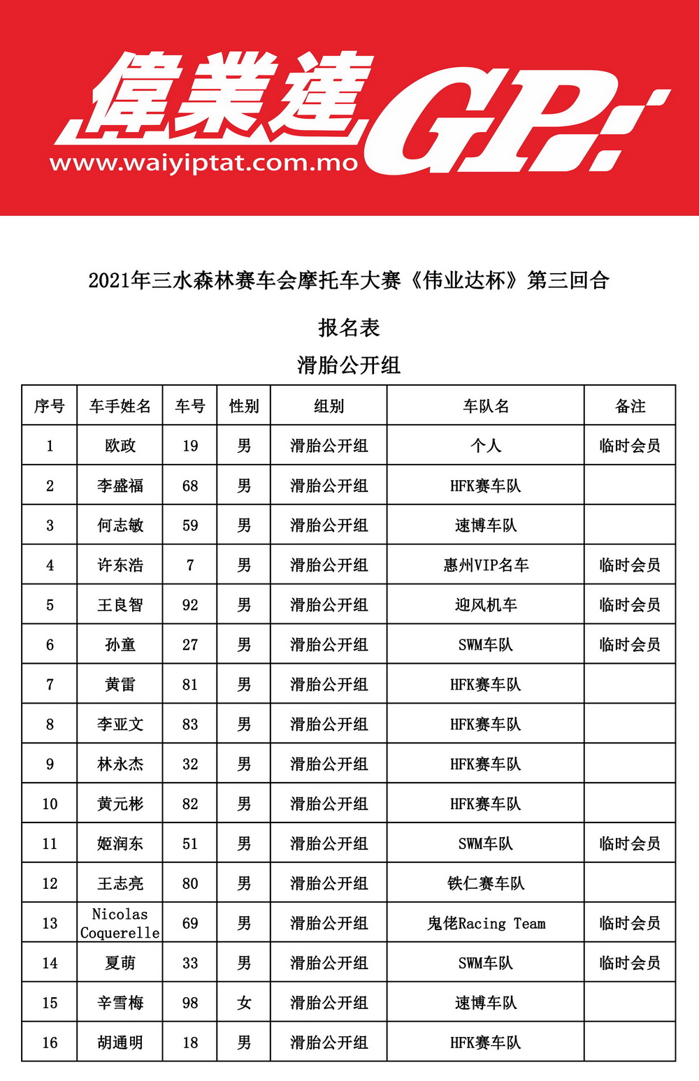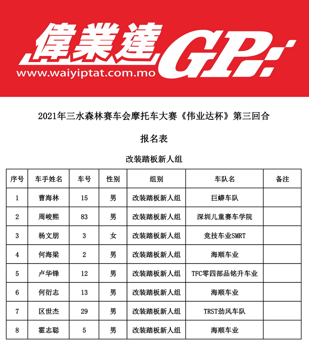 下面的圖片,2021 偉業(yè)達(dá) GP、三水偉業(yè)達(dá)杯第三回合,各組別的參賽名單。