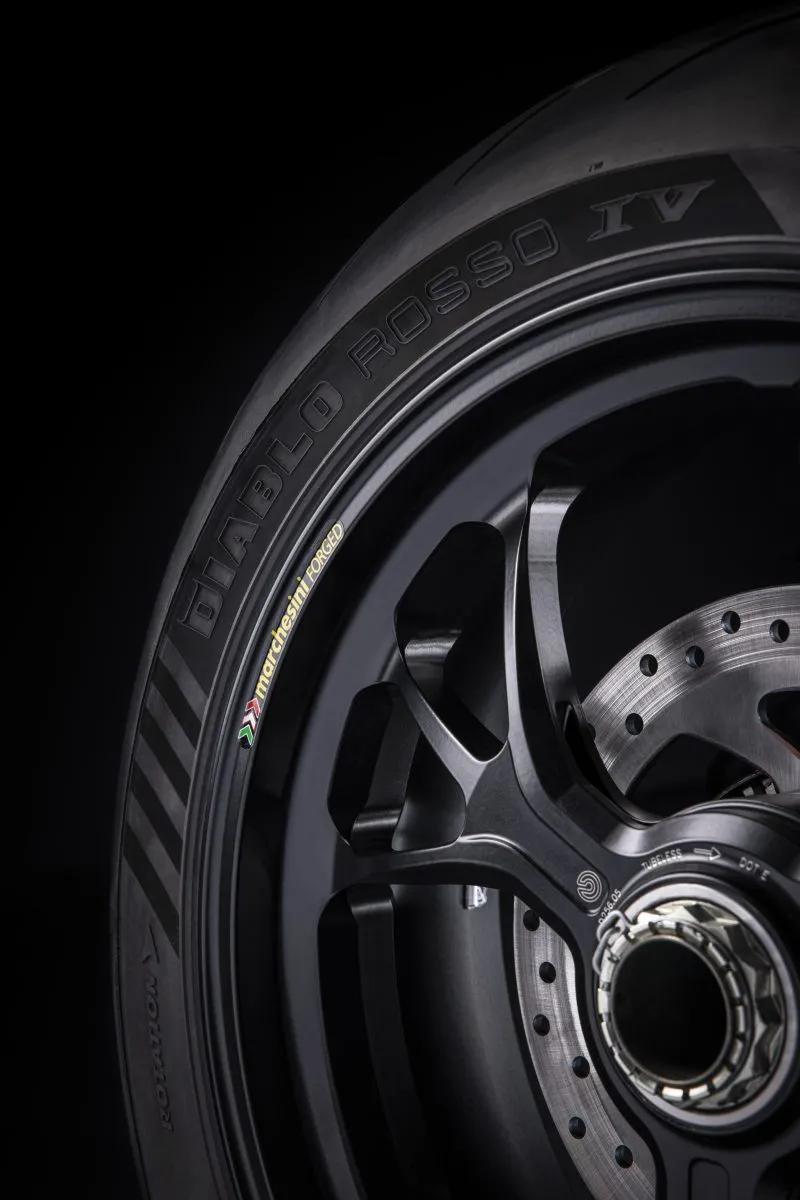 前后17寸MARCHESINI鍛造鋁合金輪框結(jié)合單搖臂設(shè)計(jì),帶來(lái)出色的簧下重量表現(xiàn)與更輕快的騎乘體感。