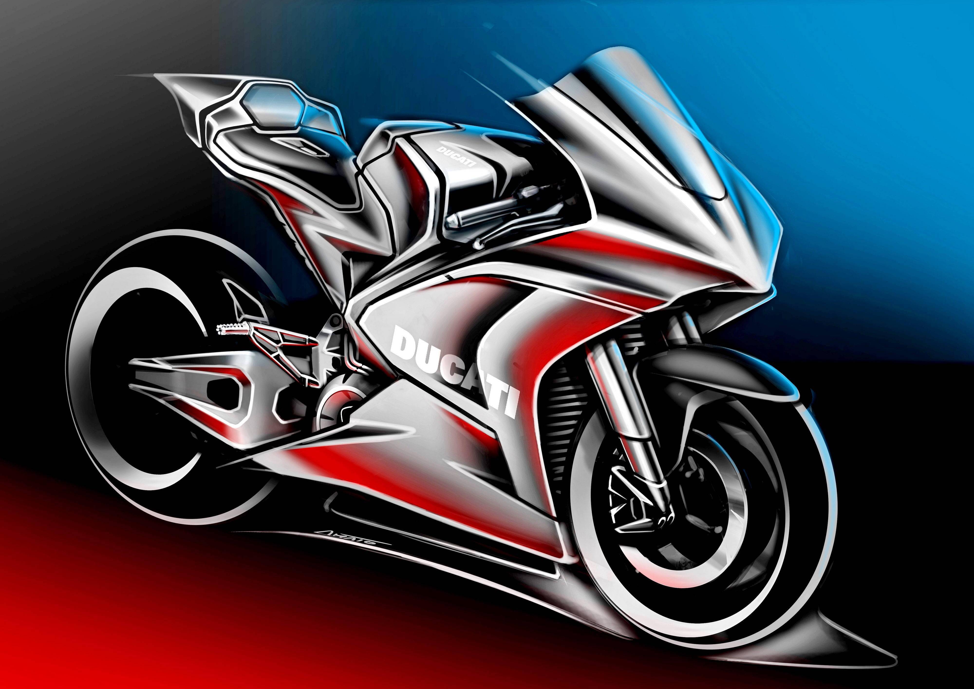 下面的圖片,杜卡迪同時(shí)發(fā)布的、未來電動(dòng)賽車的概念圖。