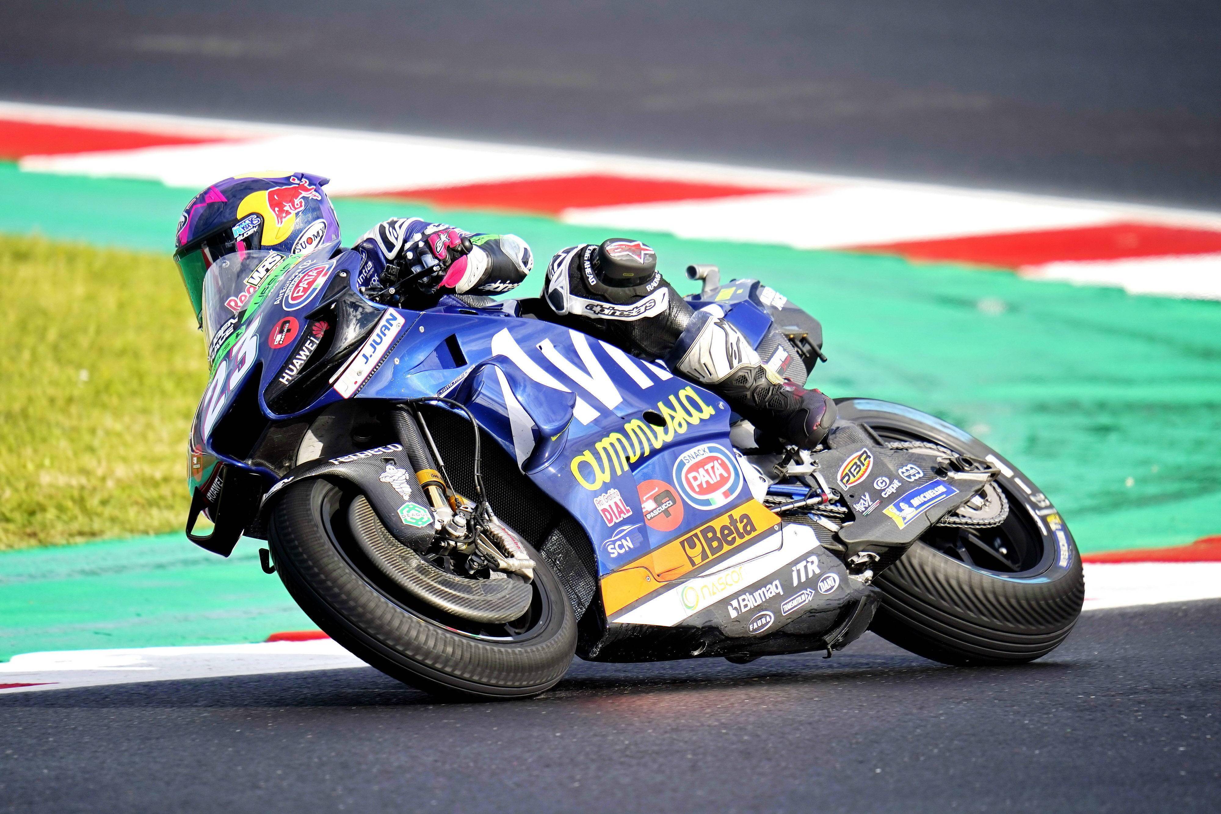 駕駛 23 號車的意大利車手巴斯塔尼尼(Enea Bastianini),駕駛著一臺車頭有著 HUAWEI 華為標(biāo)志的賽車,從第十六位起跑,在 27 圈的比賽里,越戰(zhàn)越勇、不斷地向前追趕。到第 9 圈的時候,他進(jìn)入了積分區(qū)的第 14 名;到比賽的上半場結(jié)束的第 13、14 圈,他的位置上升到了第 11 名。