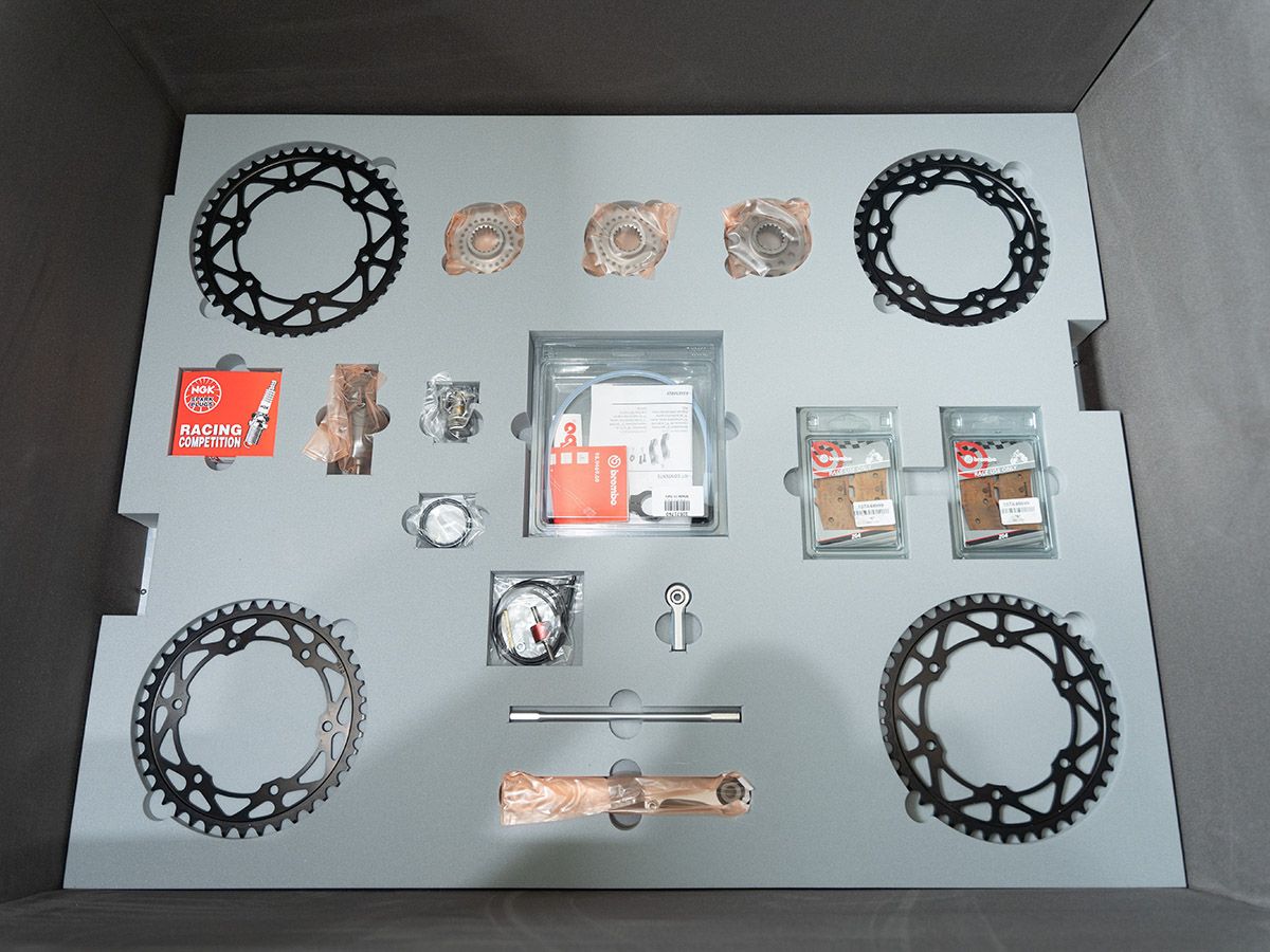 這次在日本Yahoo拍賣上出現(xiàn)的RC213V‐S是編號(hào)第58號(hào)的珍稀猛獸,行走里程僅有少少的191公里,全車保持原廠狀態(tài)(廢話,這車不需要改了吧? ),當(dāng)時(shí)需要加價(jià)購(gòu)買,解封日規(guī)馬力與噪音的賽車套件更是完全未使用,整套全新直接送給你。