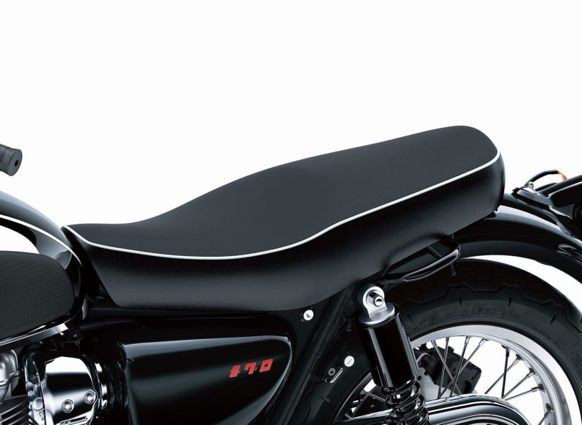 坐墊并非W800的毛毛蟲風(fēng)格,而是平坦設(shè)計,并且?guī)О咨珴L邊。