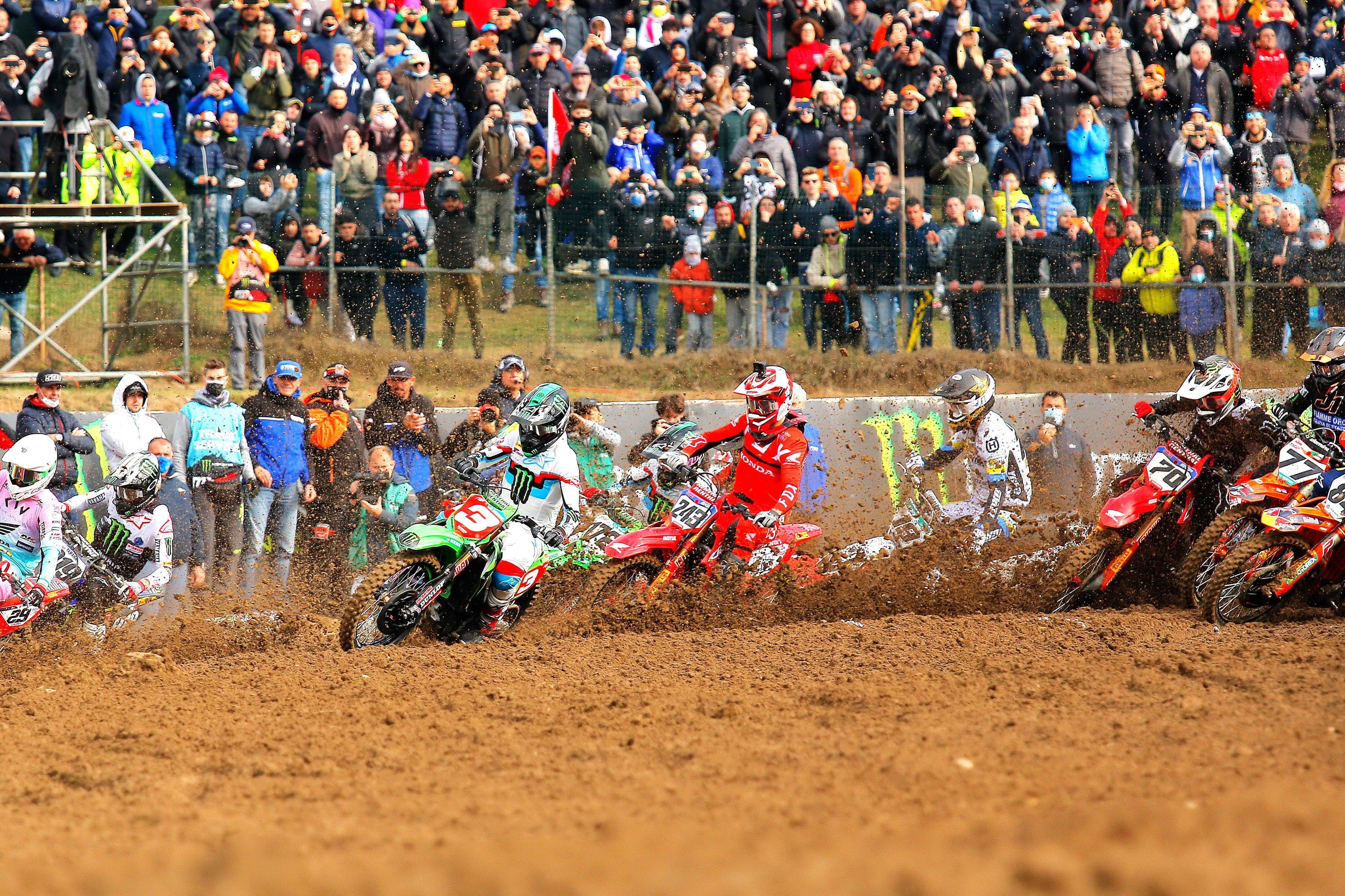 最高級別的 MXGP 級別(四沖程單氣缸、排氣量 450 cc 以下的賽車),2021 賽季的競爭堪稱是前所未有地激烈:三家制造商的三位世界冠軍級車手,84 號車的荷蘭車手賀靈斯(Jeffrey Herlings,KTM 工廠車隊(duì),MXGP/MX2 四屆世界冠軍)、3 號車的法國車手費(fèi)布爾(Romain Febvre,Kawasaki 工廠車隊(duì),MXGP 2015 世界冠軍)、243 號車的斯洛文尼亞車手蓋沙(Tim Gajser,Honda/HRC 工廠車隊(duì),MXGP/MX2 四屆世界冠軍),要拼到最后一場比賽,才以微弱的差距而決定全年的名次。