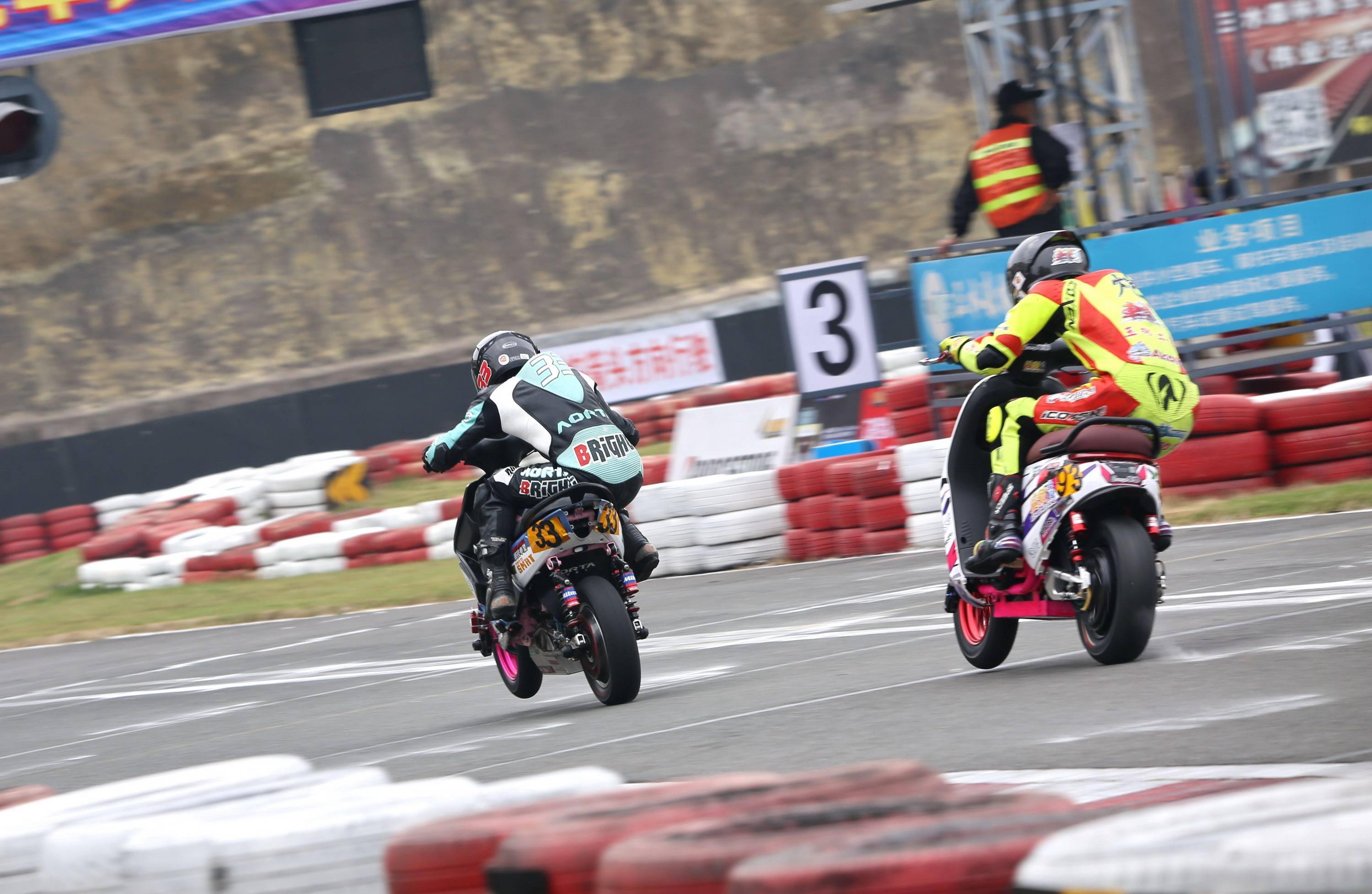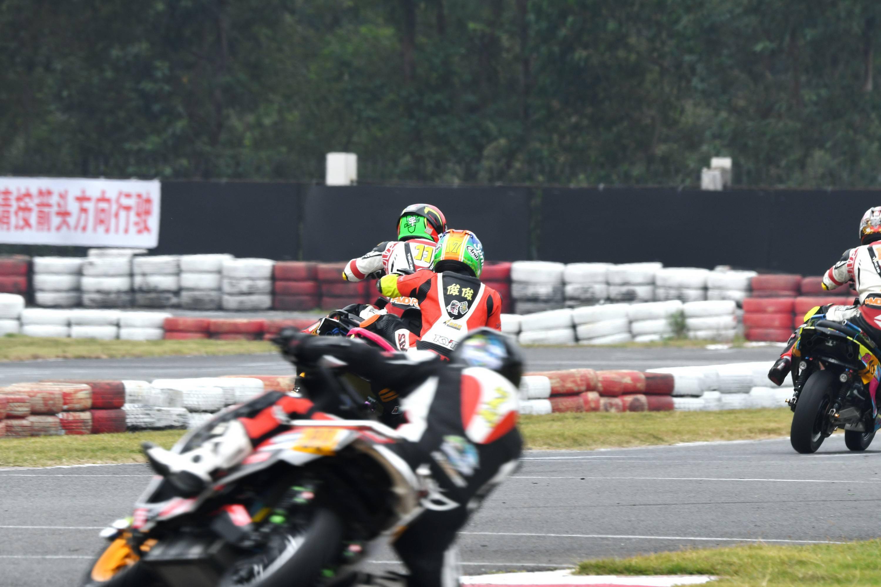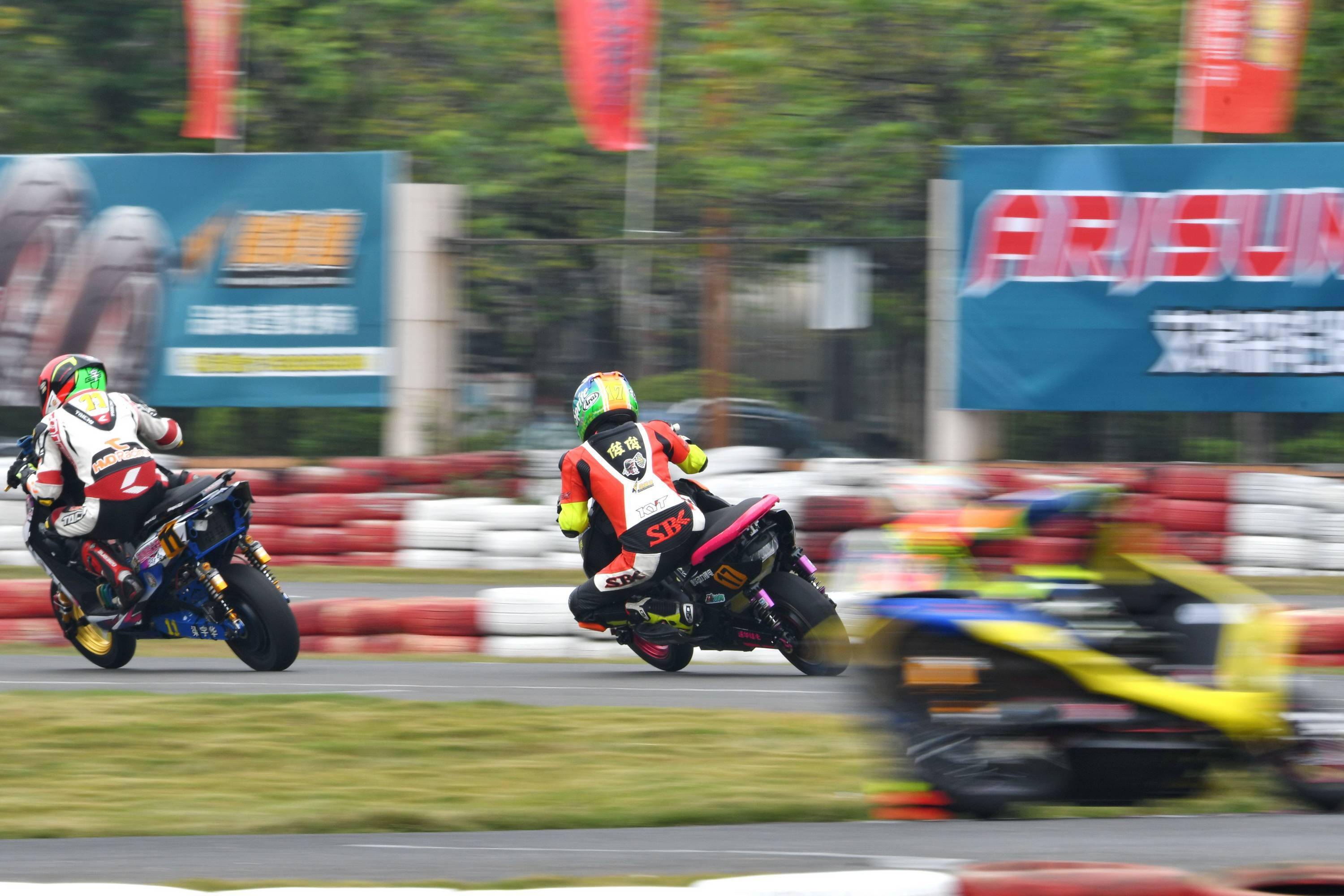 電車公開組的兩節(jié)比賽(決賽一、決賽二),前段都是激烈的爭奪:因為缺席了排位賽,從最后一位發(fā)車、17 號車的薛文俊,跟梁宇華、李俊有過頗長時間的近身格斗,直到比賽的中段之后,局面才漸漸地明朗化。而在決賽二,領先之下摔了一跤的梁宇華,重返賽道之后,與隨后第二集團里的劉展鵬、李詩鳴,有過一場引起場內(nèi)陣陣歡呼聲的纏斗。