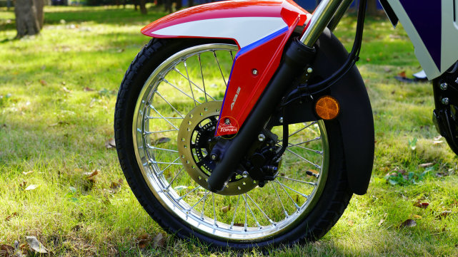 前90-90/19,后110-90/17的輪胎規(guī)格,搭配鋼絲輻條輪和全地形胎,還有高達241mm的最小離地間隙,具有相當強的通過性。