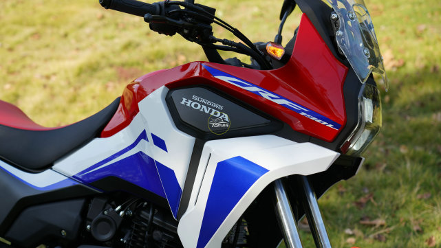 雙層全LED的車頭燈,讓CRF190L變得很有辨識度,雖然廠家給它的定位是拉力,但是并沒有采用流行的“鳥嘴”設計。