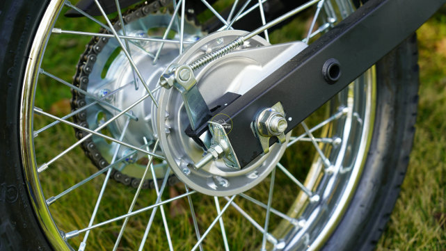 后剎車不僅沒有ABS,還給配備了家用車上常見的后鼓剎,再搭配這根造型廉價的后搖臂,確實沒有一個很好的賣相。
