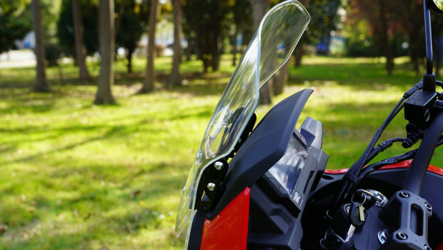 前風擋的面積還算不錯,具備兩段可調(diào)節(jié)的功能,但是需要借助工具才能實現(xiàn),使用起來不是很方便,不過有總勝過無!