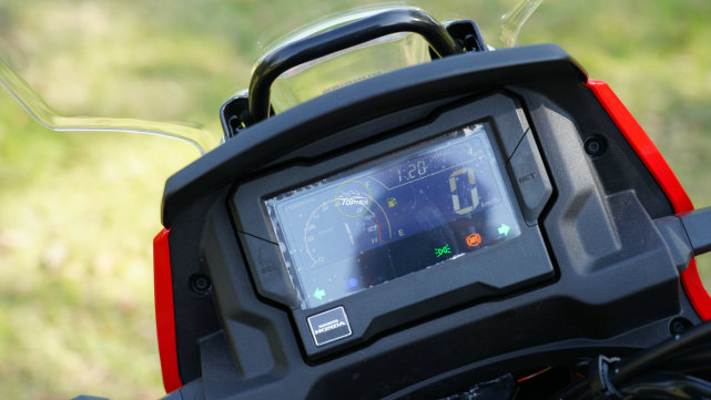 新大洲本田CRF190L并沒有采用190系列通用的儀表,重新設計之后的儀表盤更接近CB400F的儀表布局,模擬的轉速、數(shù)顯示的速度,擋顯、油量、里程等數(shù)據(jù)一應俱全。