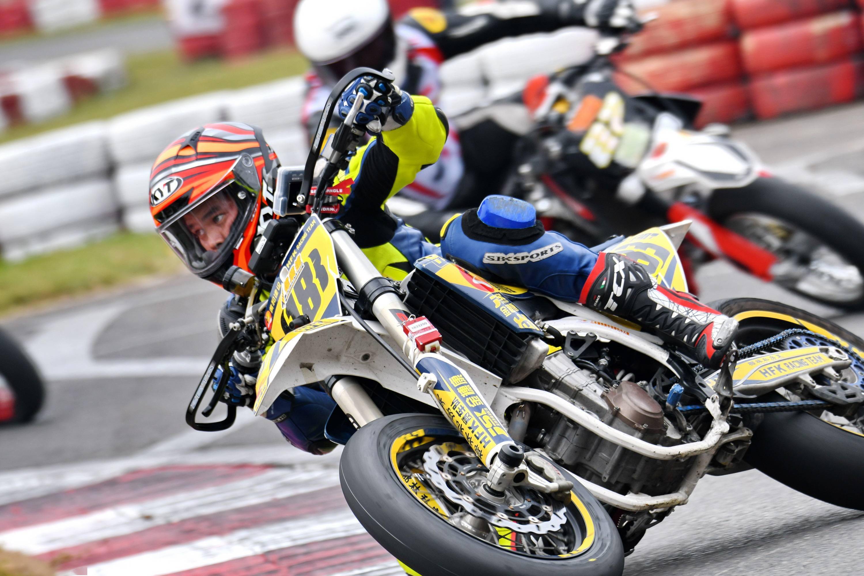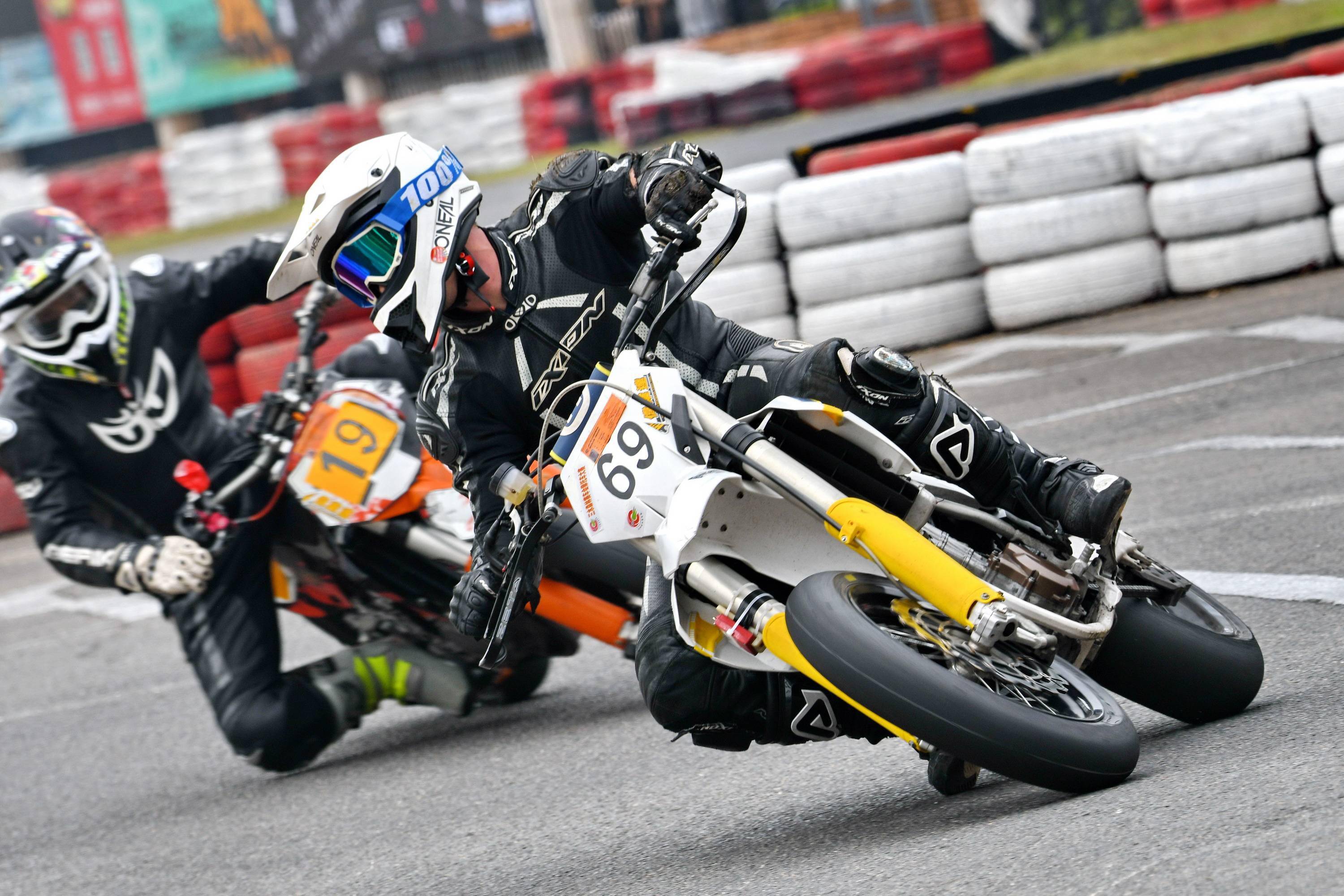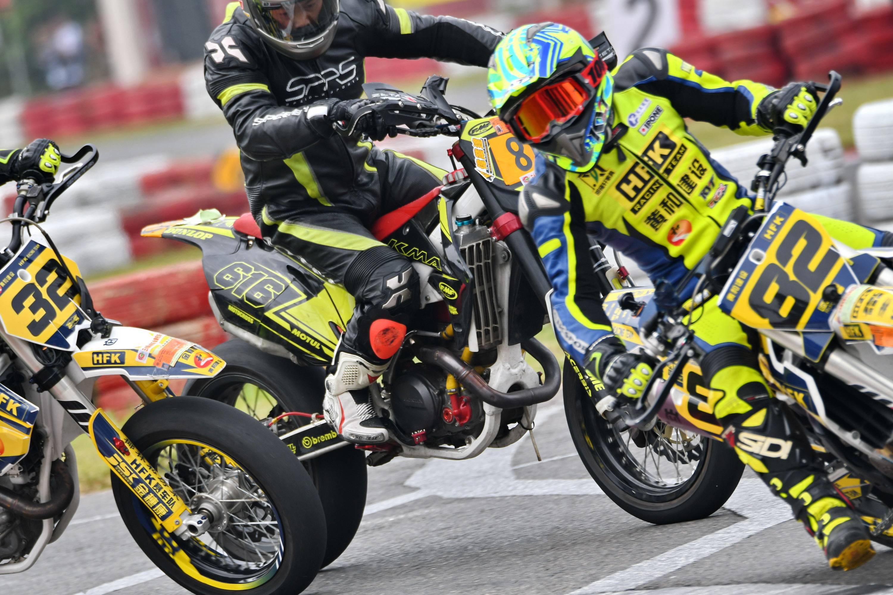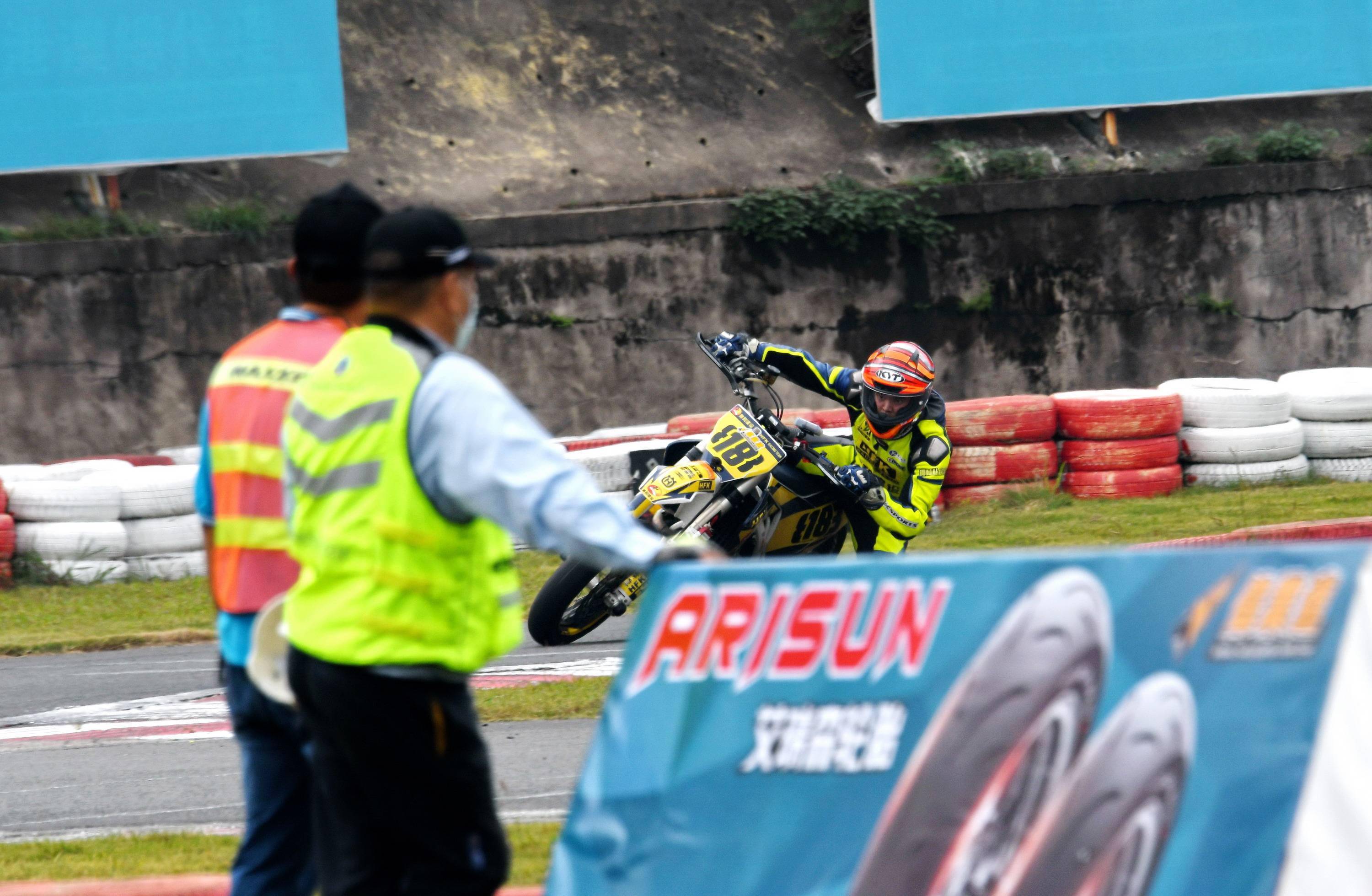 Supermoto 滑胎公開(kāi)組有十六位車(chē)手報(bào)名參賽。本回合的比賽,除了滑胎圈子里的 “ 老一輩 ” 孫童之外,SWM 車(chē)隊(duì)另有多位車(chē)手參賽,讓這場(chǎng)比賽形成了量產(chǎn)型的 On-Road(可上牌、于公共道路上行使)大戰(zhàn) Off-Road(不可上牌)比賽專(zhuān)用車(chē)的局面。