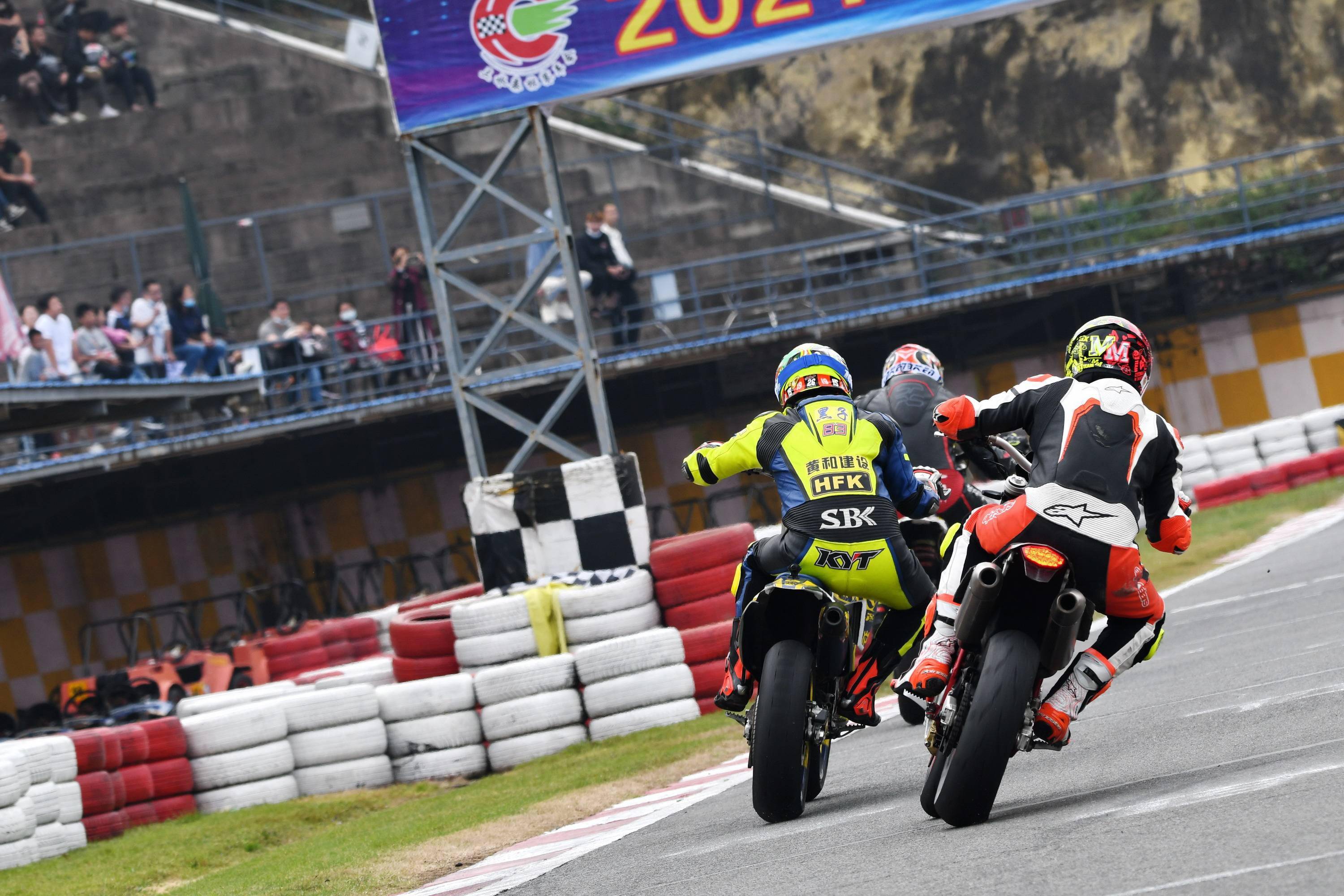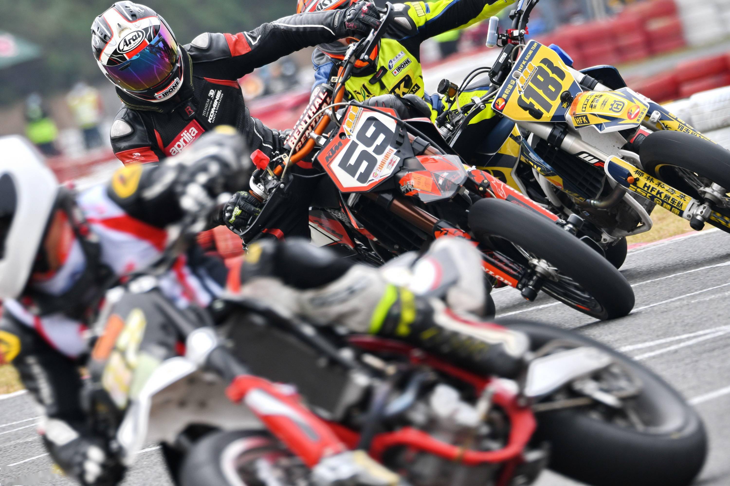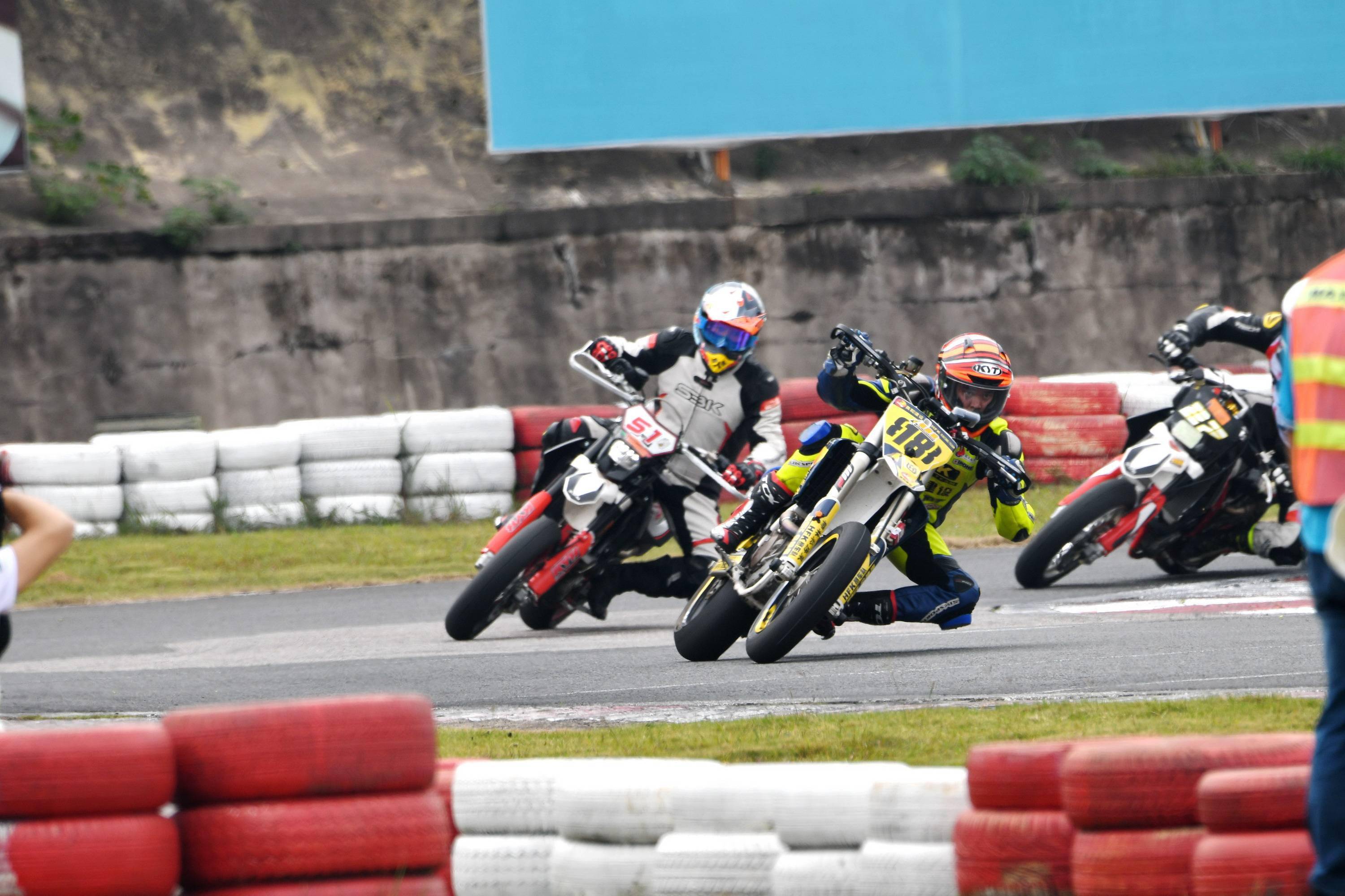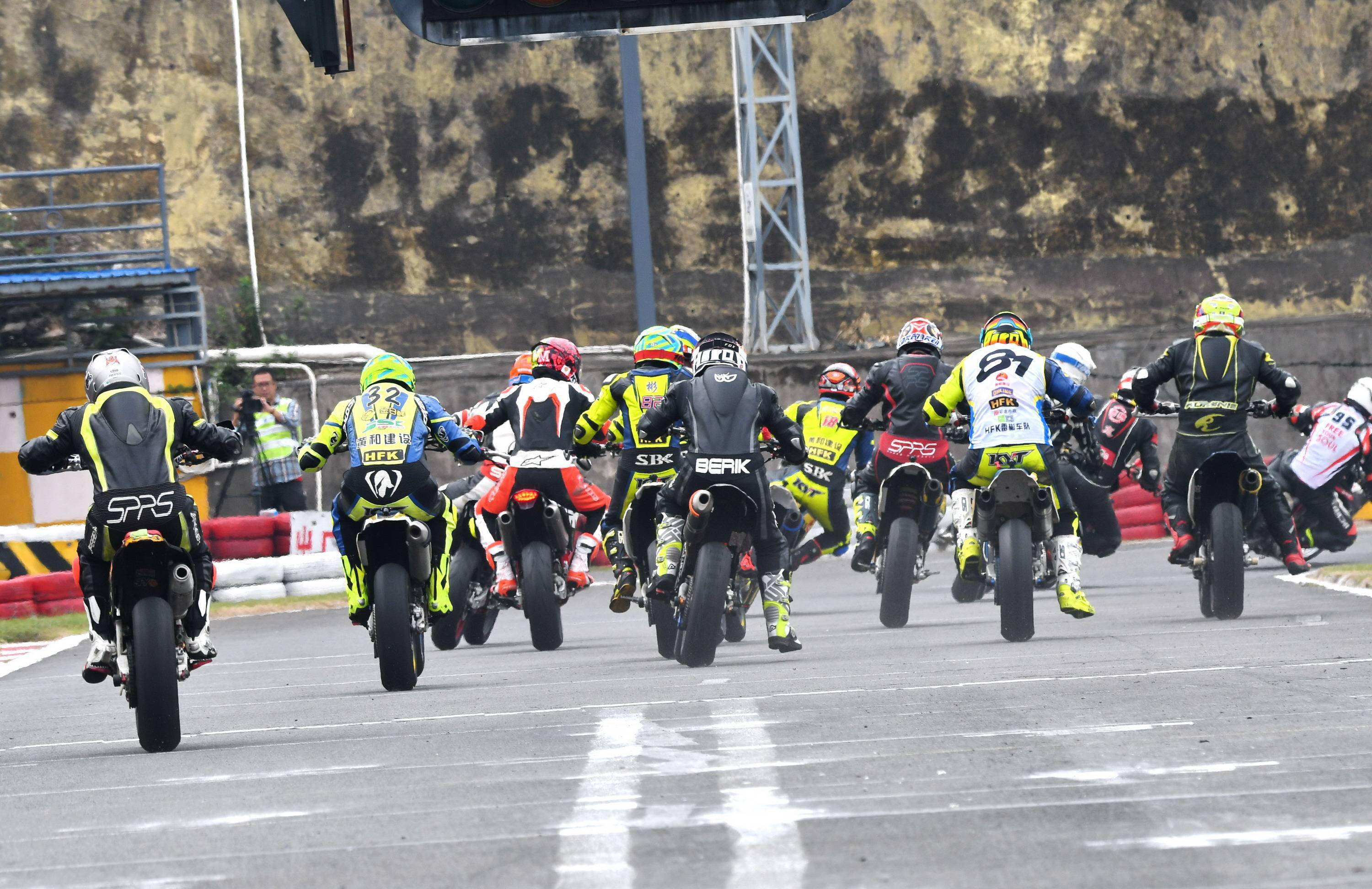 Supermoto 滑胎公開(kāi)組有十六位車(chē)手報(bào)名參賽。本回合的比賽,除了滑胎圈子里的 “ 老一輩 ” 孫童之外,SWM 車(chē)隊(duì)另有多位車(chē)手參賽,讓這場(chǎng)比賽形成了量產(chǎn)型的 On-Road(可上牌、于公共道路上行使)大戰(zhàn) Off-Road(不可上牌)比賽專(zhuān)用車(chē)的局面。