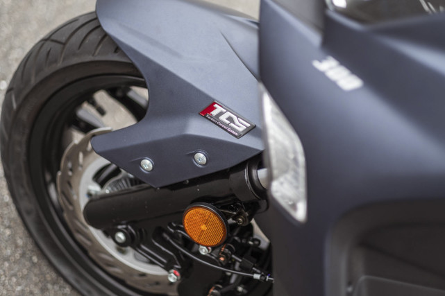 新款帥氣的外形和老款相差無幾,JOYMAX Z+相比老款最重大升級就是,配備TCS循跡控制系統(tǒng),在前泥擋上也能看到TCS的標志。搭配已經(jīng)升級為10代的ABS剎車系統(tǒng),這些雙重安全保護機制讓JOYMAX Z+的安全性更上一層樓。