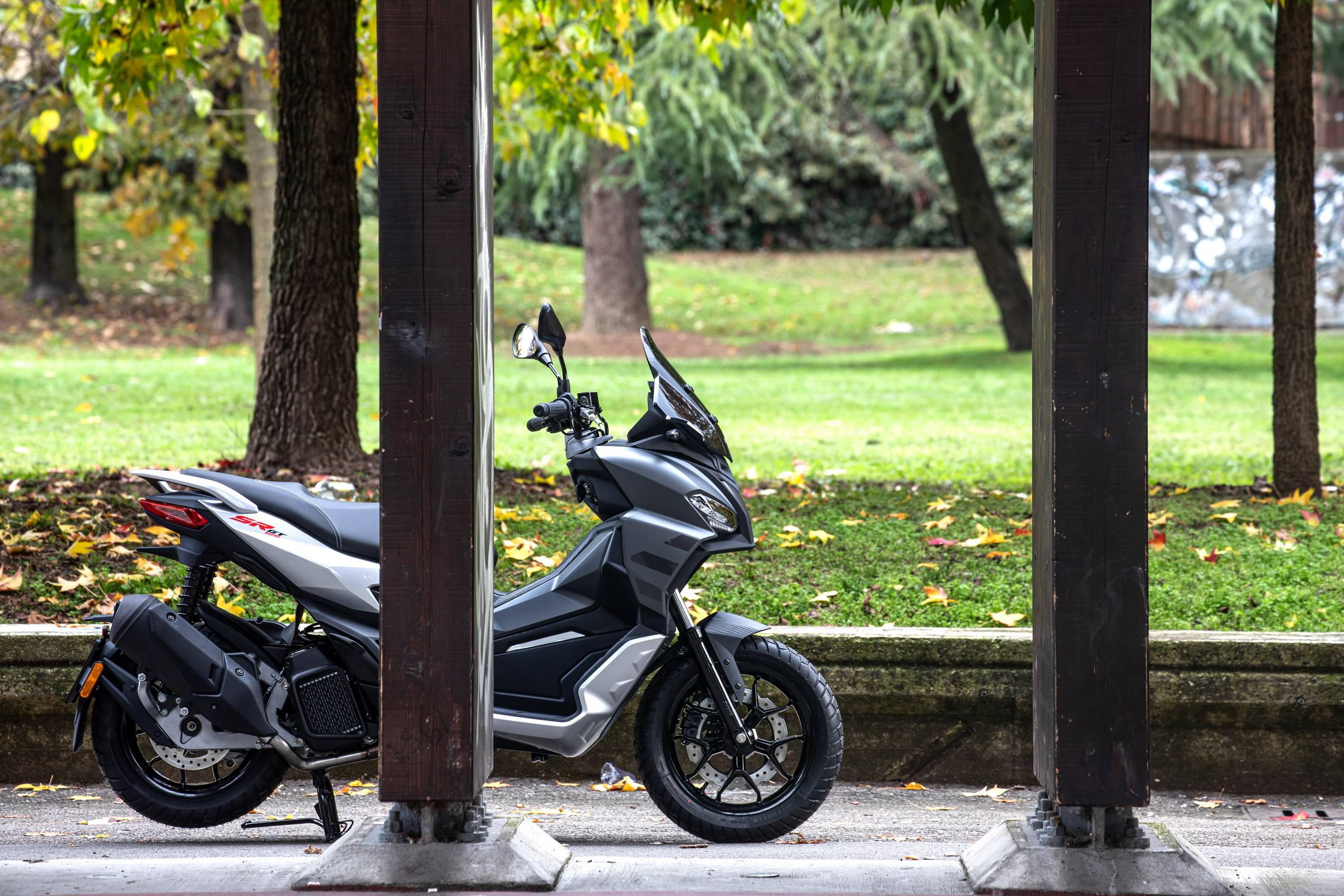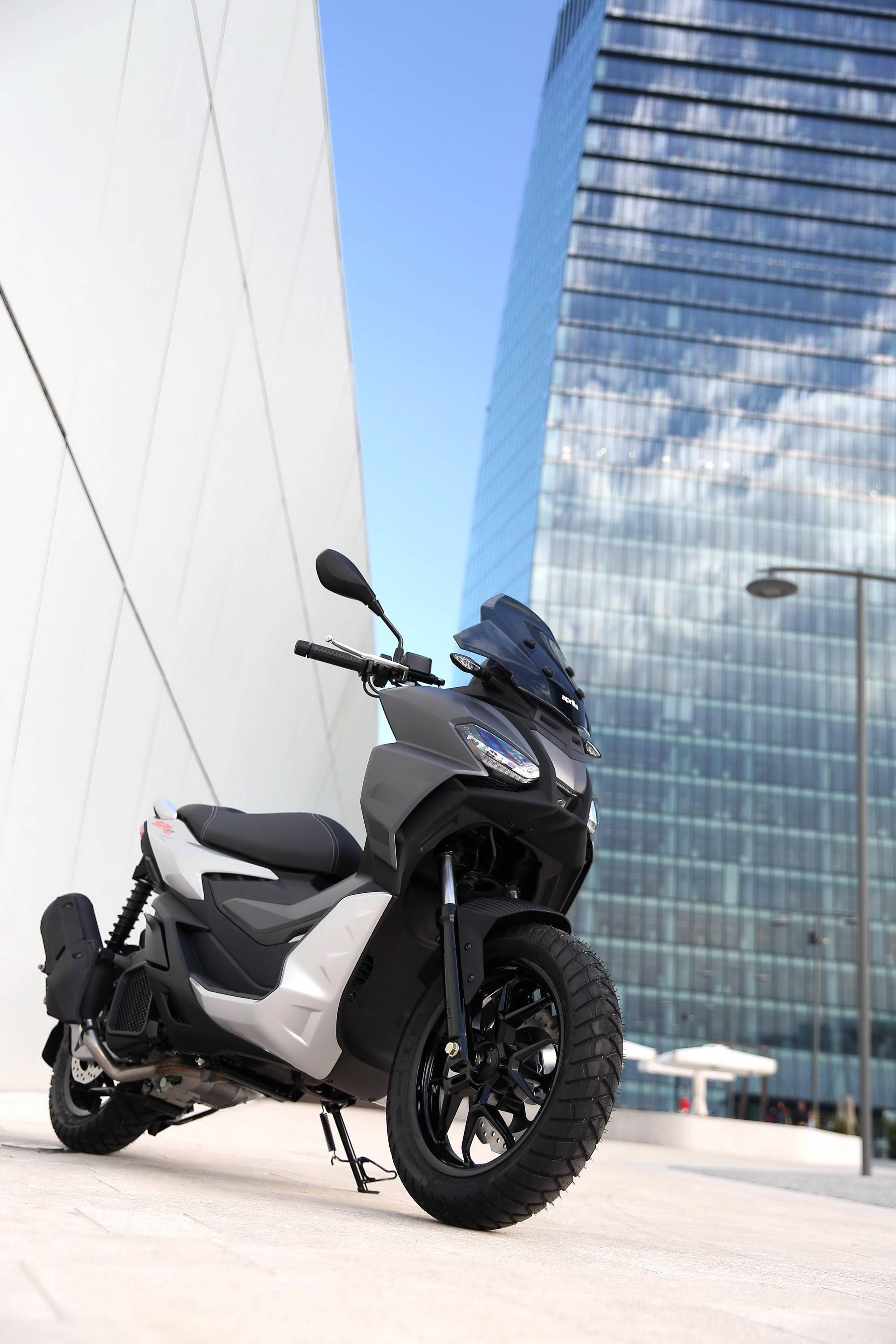 在外部設(shè)計上,新的 SR GT 125、SR GT 200 有著多項(xiàng)獨(dú)特的、有著針對 Adventure 的設(shè)計:最低離地間隙達(dá) 175 mm(注:作為參考,Honda PCX160 和 Yamaha NMAX 155 的最低離地間隙均為 135 mm),前 14、后 13 英寸的輪框,采用了大坑紋的公路/野外兩用型輪胎作為配套,前叉的伸縮行程達(dá) 122 mm(常見的公路型踏板,前叉行程普遍為 100 mm 左右)、雙筒式的后減震、行程為 102 mm(常見的公路型踏板,后減震的行程普遍為 90 mm 左右)。