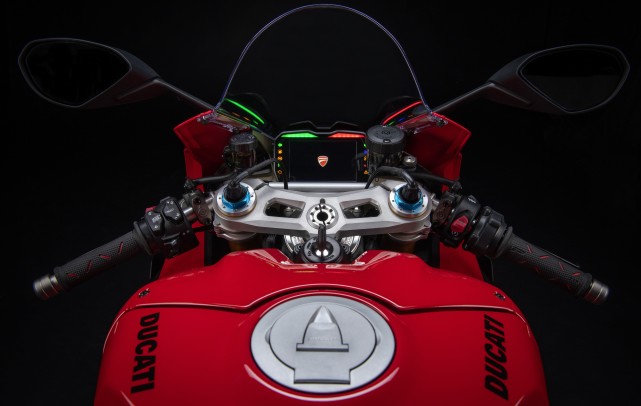 動力方面,1,103cc排量的Desmosedici Stradale 90° V4發(fā)動機,更新了新的油泵和潤滑系統(tǒng)。排氣管的出口直徑變得更大,從而降低了排氣背壓并提高了性能。最大功率215.5hp/13,000rpm,比 老款增加了1.5hp,最大扭矩123.6Nm/10,000rpm,比老款小了0.4Nm。