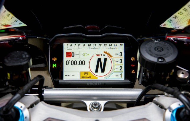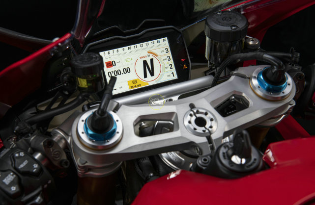 5英寸全彩TFT儀表,加入新的Track EVO布局,Track EVO將轉(zhuǎn)速切換到屏幕頂部的水平刻度,并將檔位指示器放置在屏幕中間。四個專用于牽引力控制、前輪控制、滑動控制和發(fā)動機制動控制的指示燈堆疊在右側(cè),在激活時單獨亮起,更適合賽道騎行。
