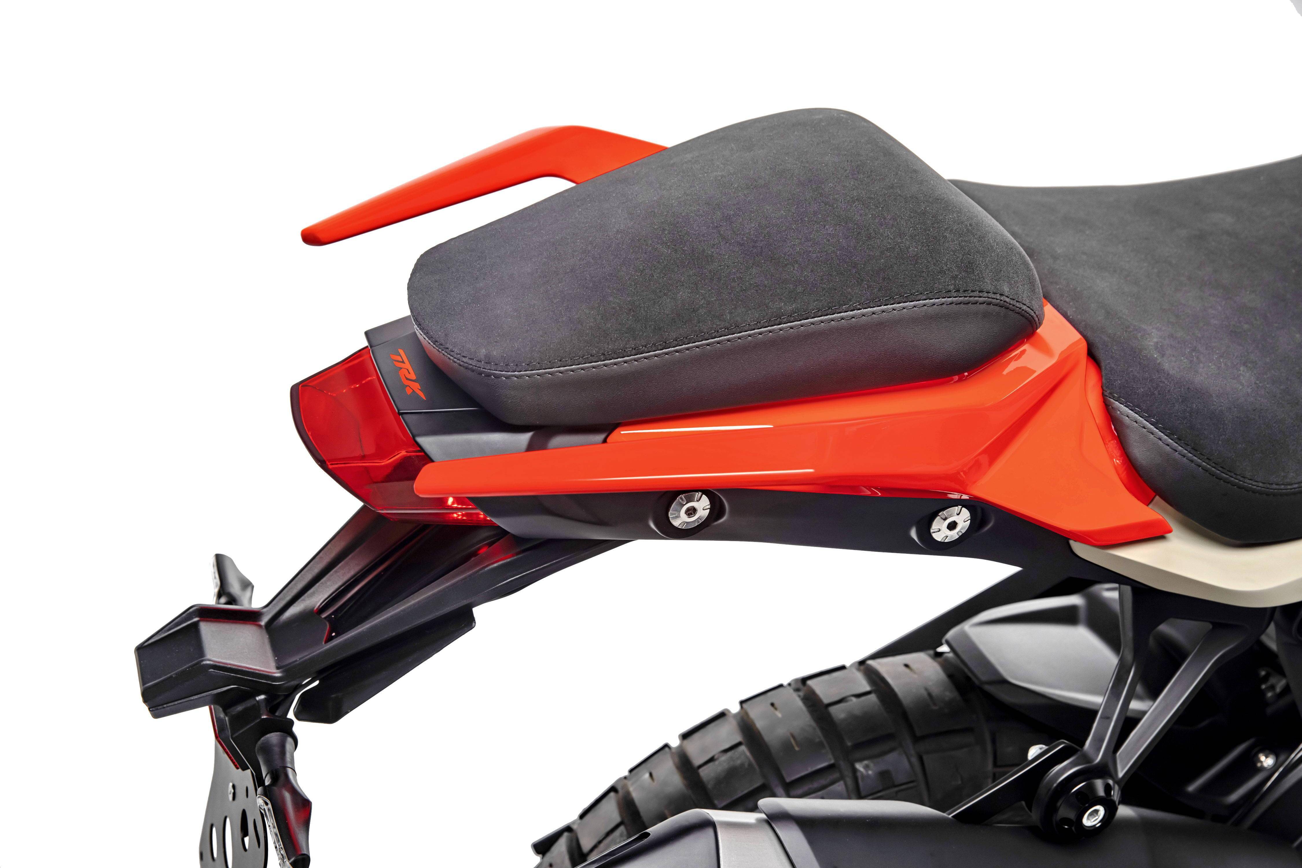 廠方稱,新的 TRK800 由 “ 幼獅之家 ”(House of the Leoncino)負(fù)責(zé)設(shè)計(jì),并由位于 Pesaro 的工場生產(chǎn),這是一款在 Benelli 于 110 周年這個特別的日子里所推出的車型,它(TRK800)代表著該意大利品牌、一個歷史新篇章的開始。TRK800 的設(shè)計(jì)以流暢、蜿蜒和強(qiáng)烈的現(xiàn)代線條為特色,與優(yōu)雅、精致的表面相結(jié)合,保持了 TRK 系列家族風(fēng)格的同時,并展示了肌肉感。