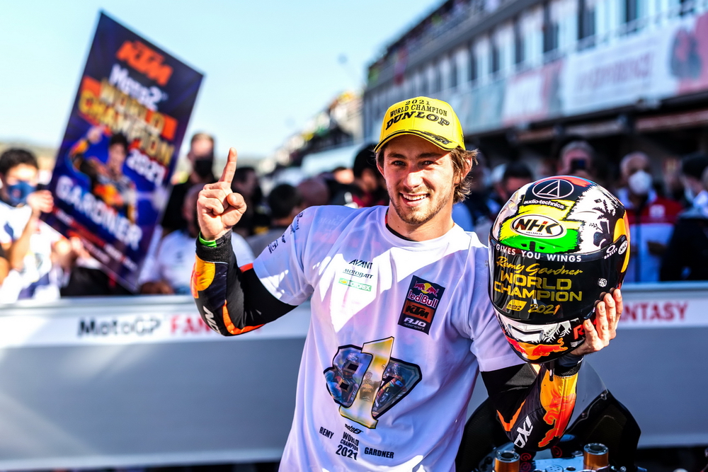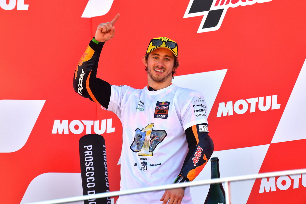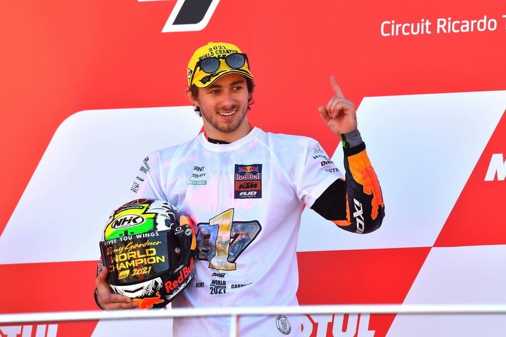 最終,加德納取得了最后一站比賽的第十名,取得了世界錦標(biāo)賽職業(yè)生涯里的首次世界冠軍。現(xiàn)年 23 歲的加德納自 2014 年進(jìn)軍世界錦標(biāo)賽(Moto3 級別),2016 年開始升級至 Moto2,到 2019 年才首次登上頒獎臺。在 2021 賽季,他總共獲得了五個分站的冠軍、累計(jì) 12 次登上頒獎臺。除了美國站的比賽之外,他在其余的十七個分站比賽里,都拿到了積分。