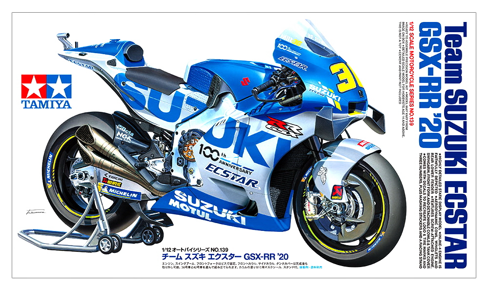 上月中的時候,日本 Tamiya 田宮模型、推出了比例尺為 1/12、采用了 Suzuki 創(chuàng)立一百周年紀念圖案的 MotoGP 工廠賽車 2020' GSX-RR。去年是日本 Suzuki 公司創(chuàng)立一百周年的紀念,且他們的 MotoGP 工廠車隊,西班牙車手米爾(Joan Mir)奪得了去年 MotoGP 級別的世界冠軍。