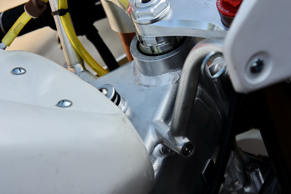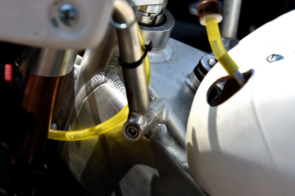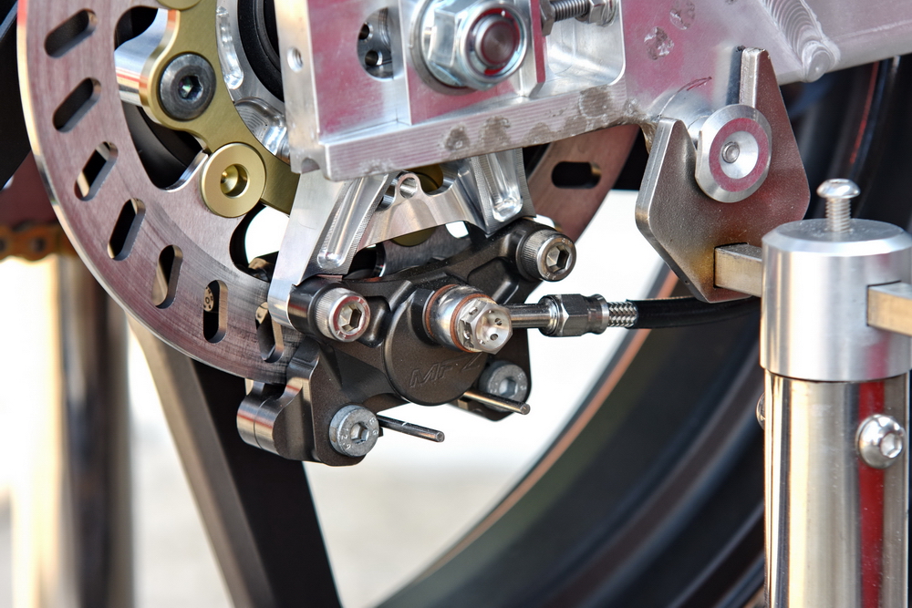 4、前制動(dòng)系統(tǒng),從之前的大直徑單碟、換裝為小直徑雙碟。新設(shè)計(jì)意在提高剎車的穩(wěn)定性,以及降低在高速轉(zhuǎn)向時(shí)、大單碟前制動(dòng)系統(tǒng)所帶來(lái)的渦流效應(yīng)。而此種配置,一直是 Moto3 甚至是過(guò)去 GP125 的正式比賽里,所看到的賽車之做法,但缺點(diǎn)就是成本太高。故此,市售版的 GP125(譬如 RS125、TZ125)或者是 Moto3(譬如 NSF250R、RC250R/RC4)賽車,在標(biāo)準(zhǔn)狀態(tài)下、都是采用前大單碟的設(shè)計(jì);