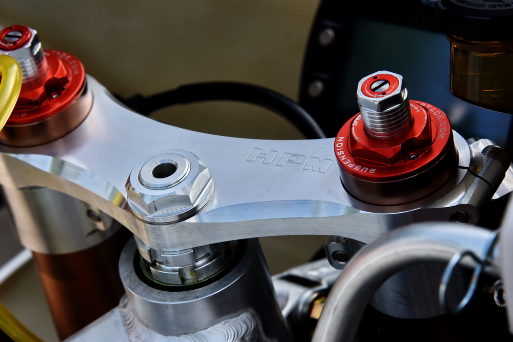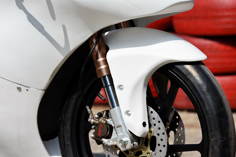 3、換裝了來(lái)自 FastAce 法斯特的全可調(diào)倒立式前叉(第一代、第二代均采用正立式前叉);