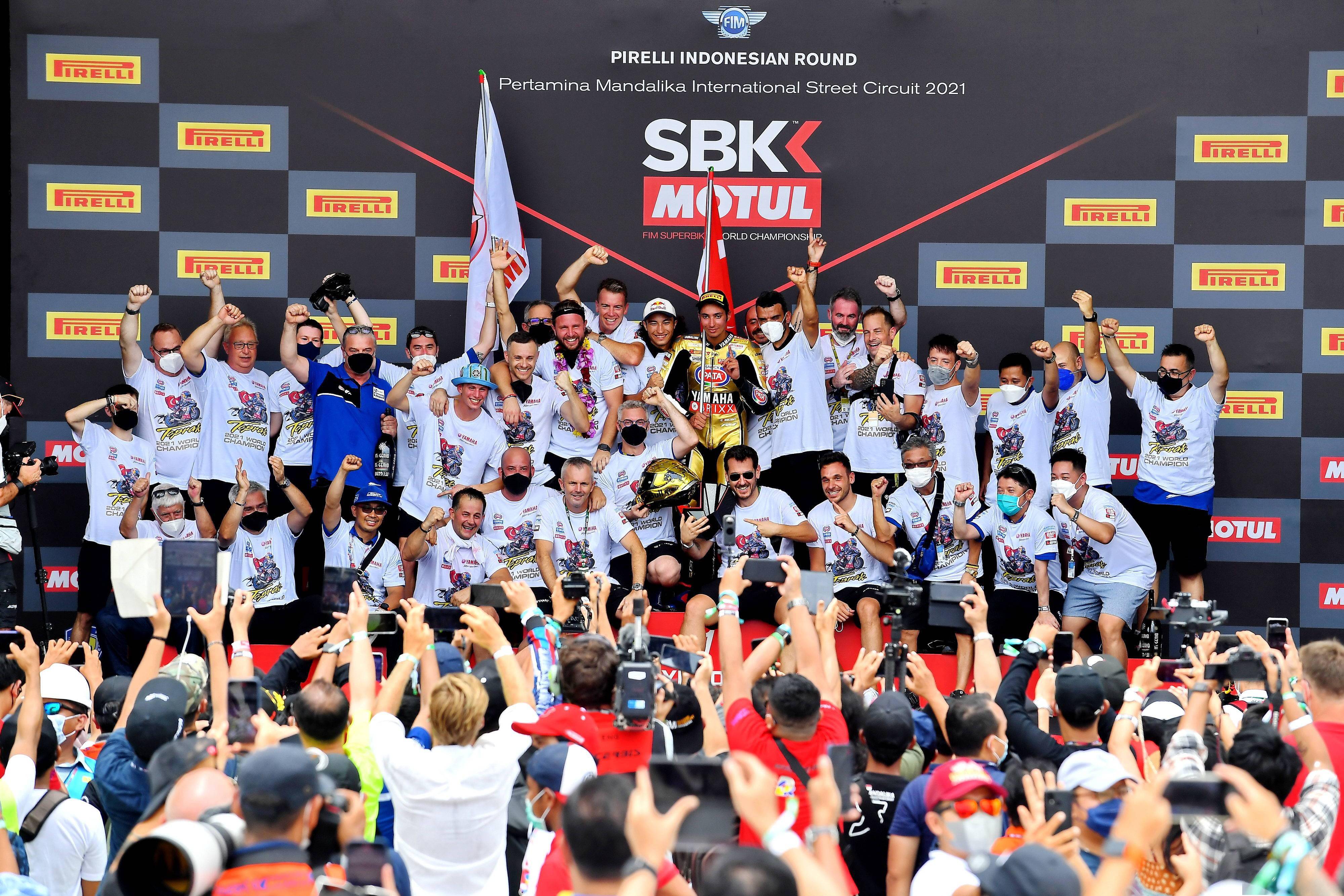 對(duì)于 Yamaha 來說,這是他們?cè)?WSBK 1988 - 2021 歷史上的第二次世界冠軍,對(duì)上一次、已經(jīng)要追溯到 2009 年。對(duì)于 YZF-R1 這臺(tái)超級(jí)跑車來說,自 2015 年新一代(第八代。不同國家/地區(qū)的工廠編號(hào)分別:2CR/2KS/BX4)的車型推出并重返 WSBK(注:受歐美金融危機(jī)的影響,Yamaha 在 2012 - 2014 年間,沒有派出工廠車隊(duì)參與 WSBK),到 2019 年、經(jīng)過換代的新型 YZF-R1(第九代。不同國家/地區(qū)的工廠編號(hào)分別:B3L/4BS)投入到賽場(chǎng)中去,到現(xiàn)在、終于可以登上頒獎(jiǎng)臺(tái)的最頂端。