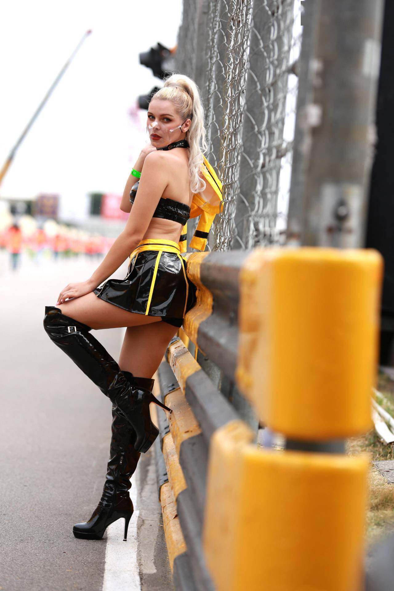 下面的圖片,比賽現(xiàn)場的賽車女郎(攝影:Max Cher)。