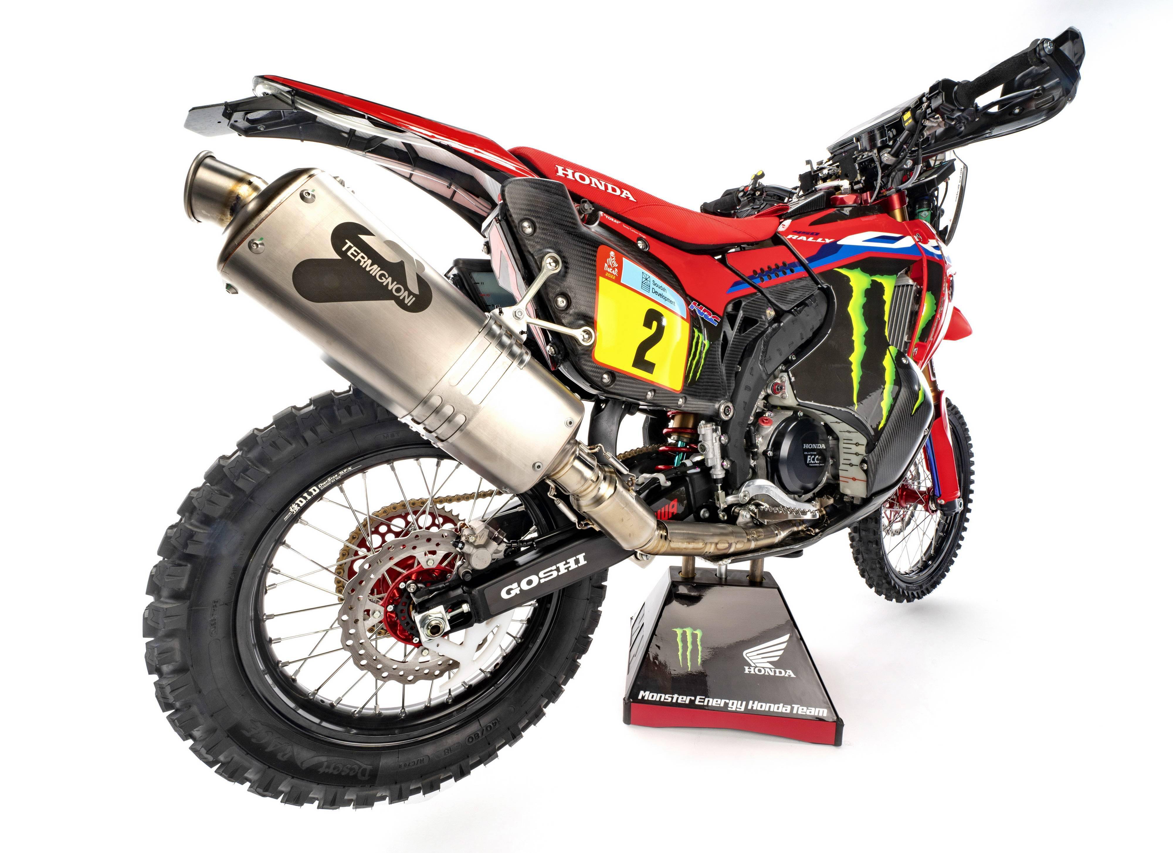 HRC 的達(dá)喀爾拉力賽/ FIM 越野拉力世界錦標(biāo)賽里的工廠賽車(chē) CRF450 Rally,以市售越野賽車(chē) CRF450R/CRF450X 為基礎(chǔ)、經(jīng)過(guò)大量改裝而成,搭載一副水冷四沖程單氣缸的發(fā)動(dòng)機(jī),車(chē)體采用一副雙翼樑式的車(chē)架,特制的賽車(chē)懸掛系統(tǒng)等。HRC 稱(chēng),自 2018 年對(duì) CRF450 Rally 工廠賽車(chē)進(jìn)行了大幅升級(jí)之后,其戰(zhàn)斗力是有目共睹的。新版本的工廠賽車(chē),是以之為基礎(chǔ)作進(jìn)一步更新之后的成果。