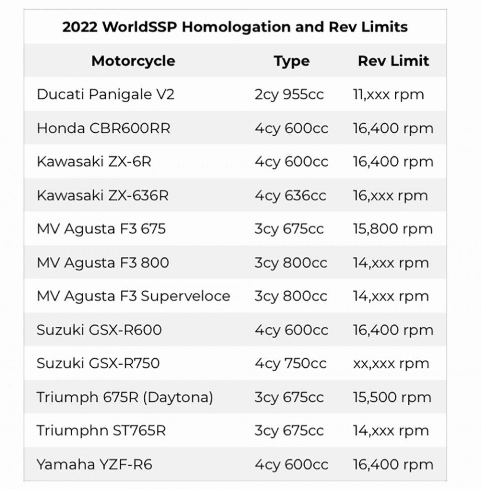 2022 WorldSSP合格參賽車輛名單以及轉(zhuǎn)速限制