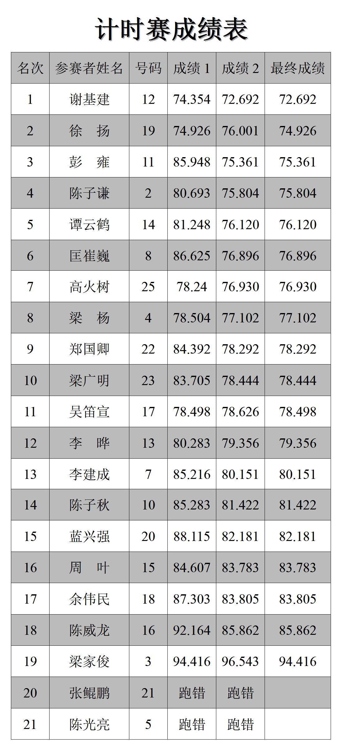 下面的圖片,計時賽的三甲和成績。