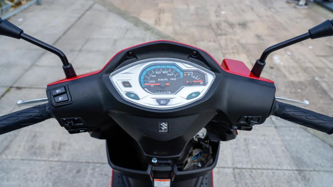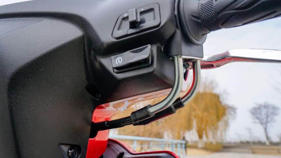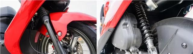車輛儀表臺部分,采用雙指針式儀表,時(shí)速、里程、油量等信息均可顯示,白天強(qiáng)光環(huán)境下可視度不受影響。而開關(guān)則是踏板車的常規(guī)開關(guān),雖然外觀看起來沒什么亮點(diǎn),但好在實(shí)際手感不錯,段落感清晰。雙油門線的配置也得以延續(xù),油門響應(yīng)更為靈敏。
