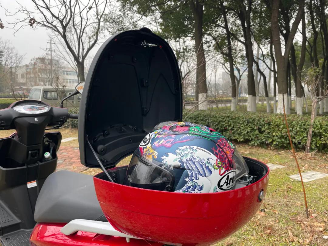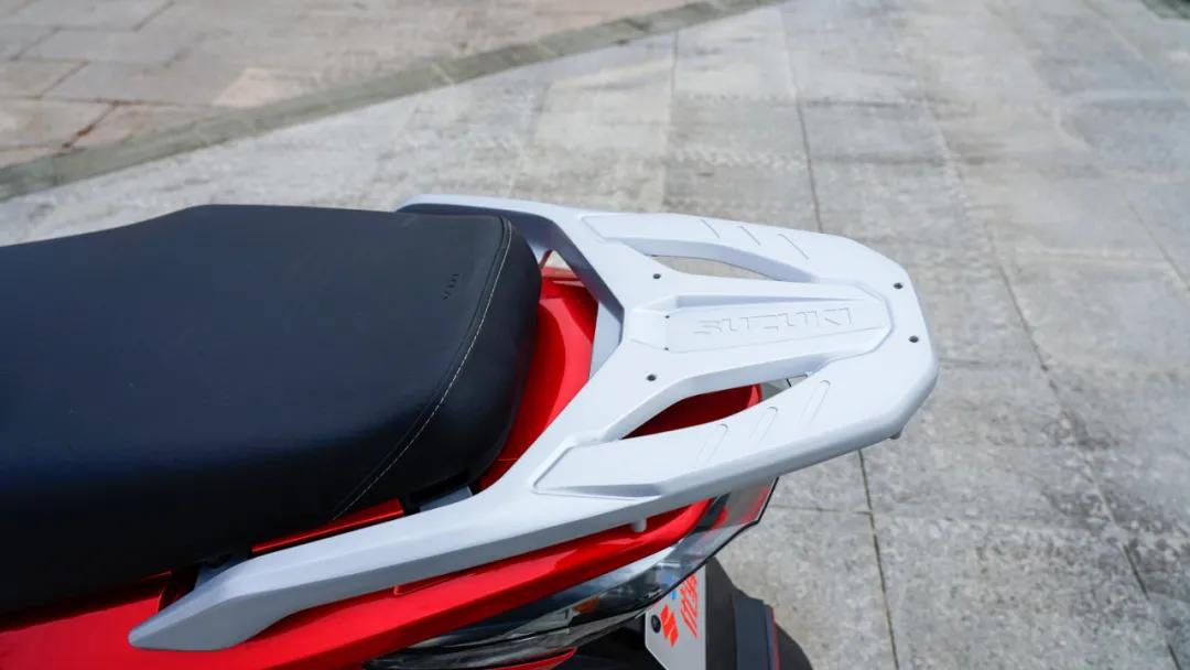 好在高配車型配備的原廠鋁合金后貨架及大容量尾箱彌補(bǔ)了座桶放不下全盔的缺憾,實(shí)測后尾箱可以容納一頂全盔的同時(shí)還能放進(jìn)一些手套等雜物。即使不裝后尾箱,原廠寬大結(jié)實(shí)的鋁合金后貨架配合特意設(shè)計(jì)的綁繩固定點(diǎn),依舊可以固定大多數(shù)貨物。