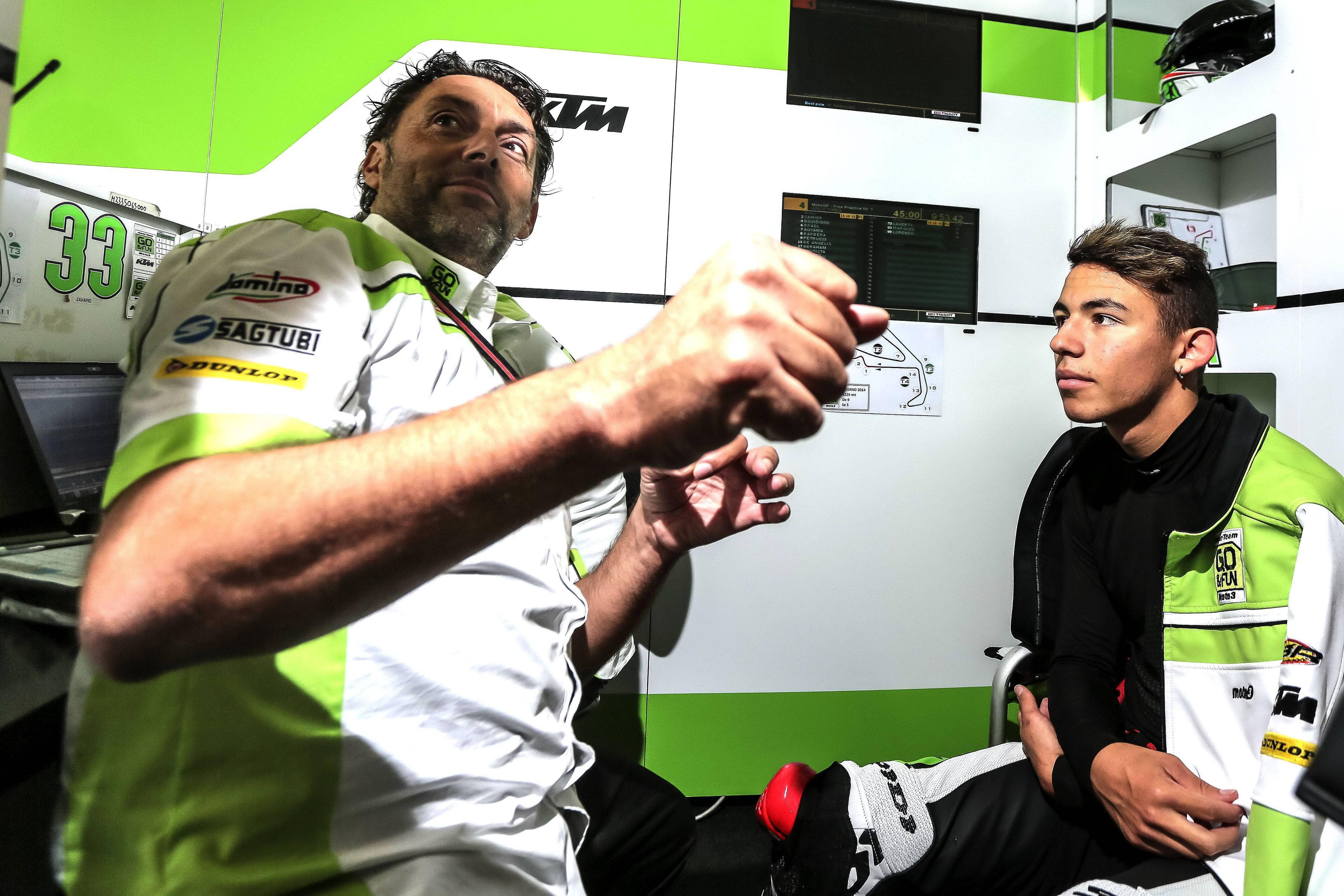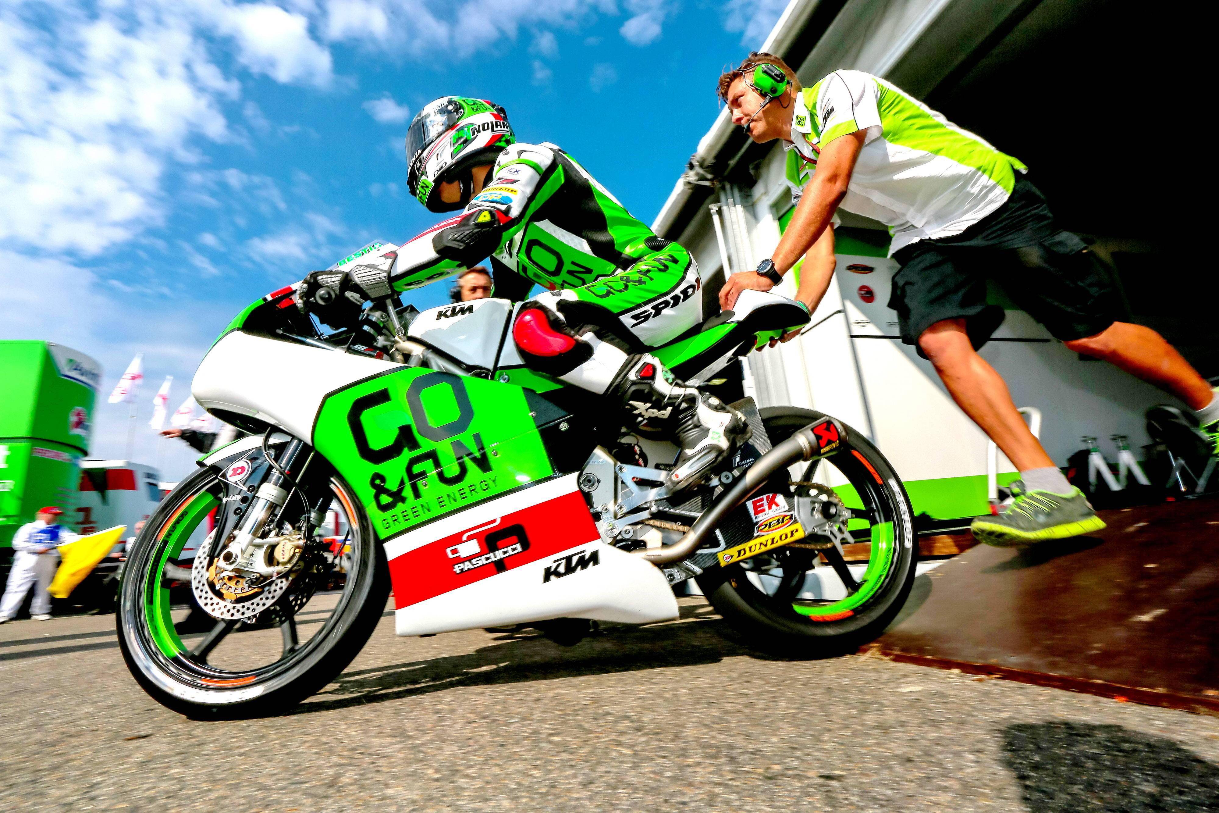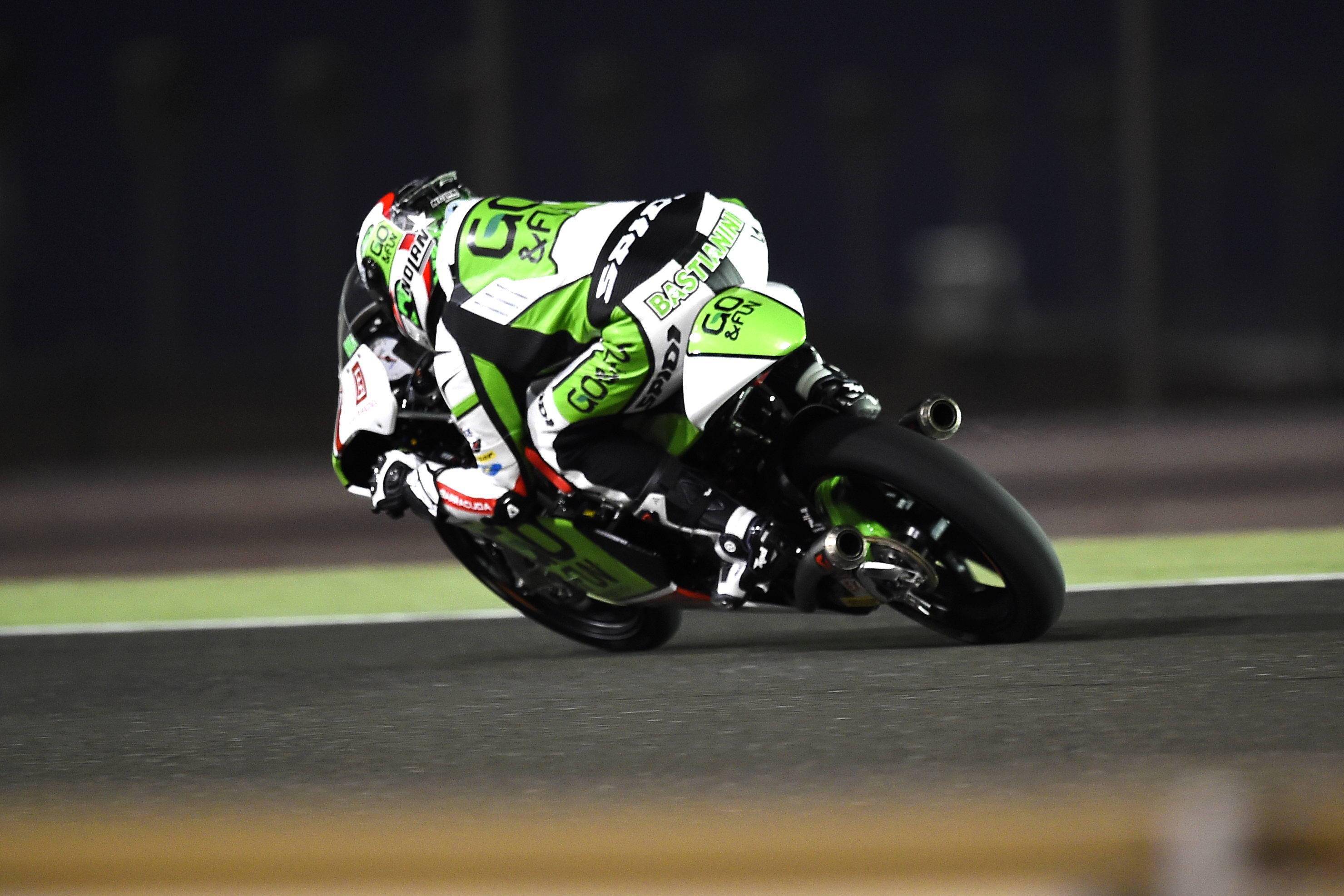 下面的圖片,2014 賽季的 Moto3 級(jí)別、效力于吉斯尼青年隊(duì)的巴斯塔尼尼(資料圖片)。