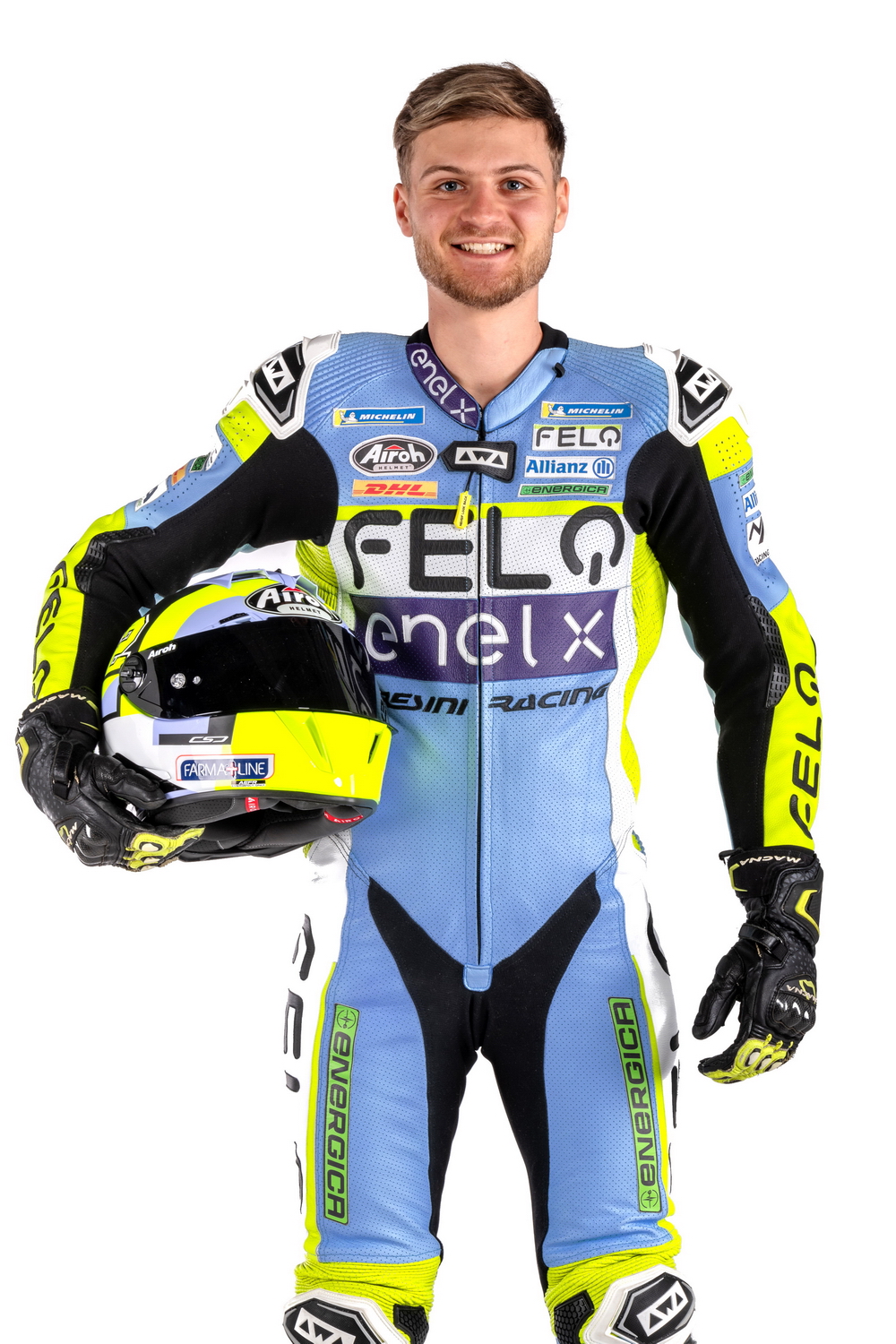 兩位車手均來自意大利,現(xiàn)年 24 歲的法拉利是隊中的核心:他是 2019 年首屆 MotoE 賽事的年度冠軍,過去兩季的比賽里也分別獲得了年度總季軍(2021)、總亞軍(2020)。