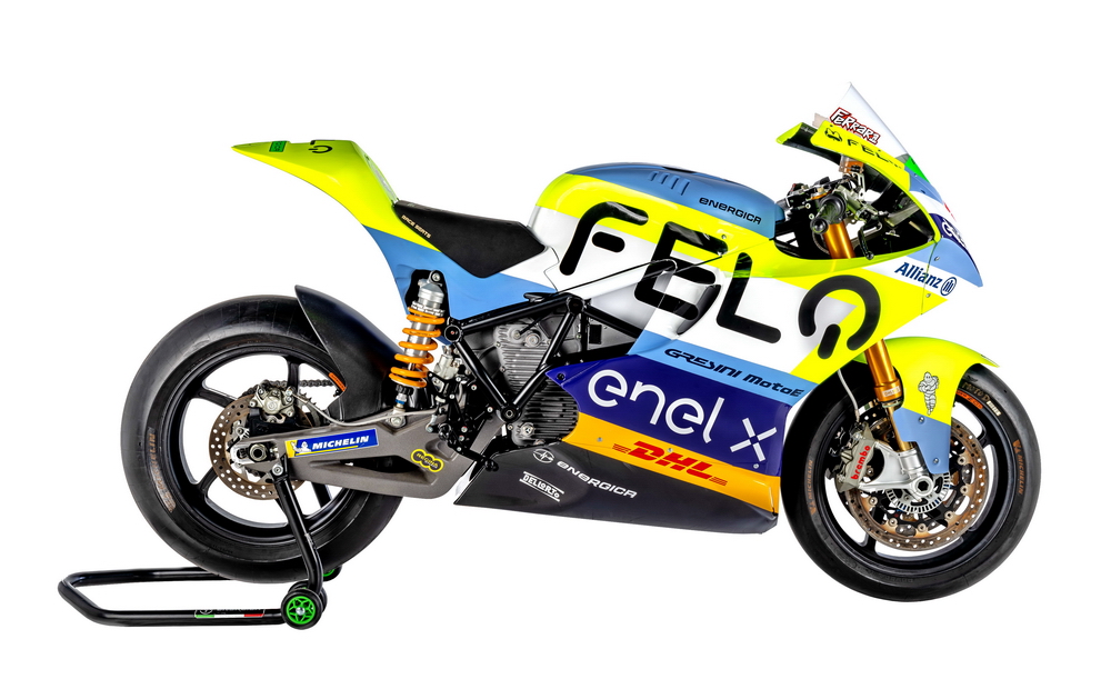 MotoE 今年的比賽,統(tǒng)一使用意大利 Energica 所提供的賽車,該車的基礎(chǔ)車來自量產(chǎn)車型 Ego Corsa,采用中置電機(jī)的布局、峰值功率輸出 120 kw。車體采用一副鋼管式的車架,賽車級的懸掛、制動系統(tǒng),全車重量 260 公斤。