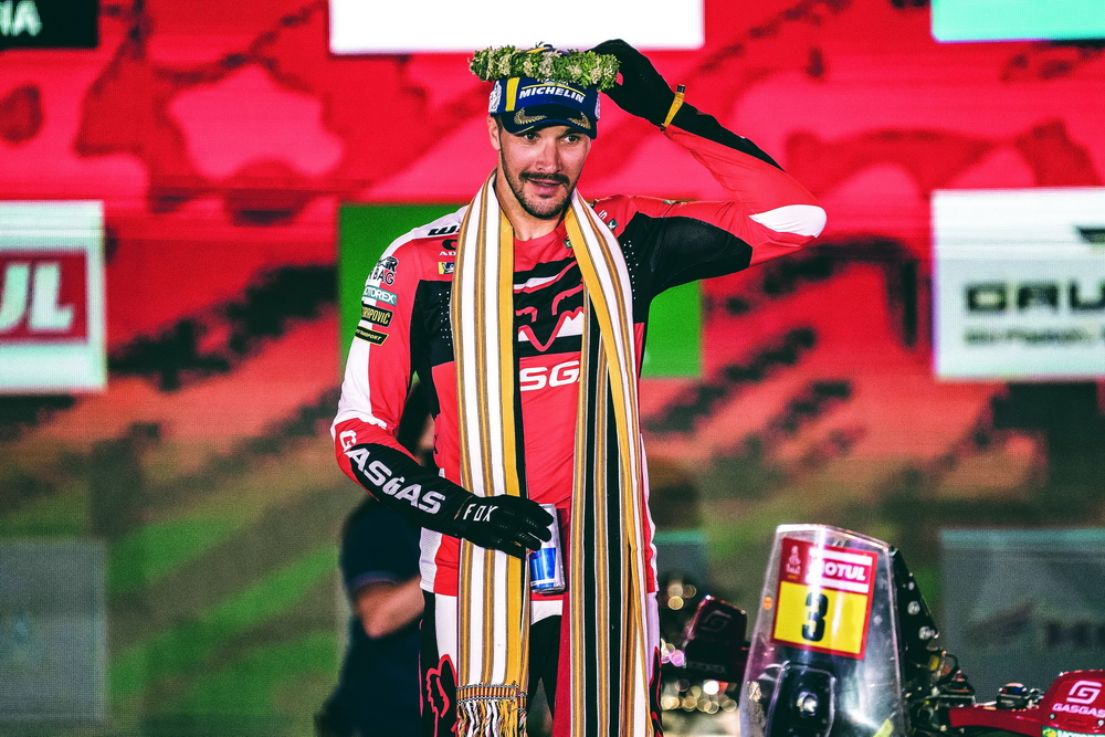 “ 這次勝利的感覺(jué)要比第一次的時(shí)候好,因?yàn)檫@次勝利一點(diǎn)也不容易。今年(車手們)的時(shí)間都太接近了,這真是一場(chǎng)勢(shì)均力敵的比賽,一直拼到了最后。所有的辛勤工作、犧牲,以及 GasGas 團(tuán)隊(duì)為我所做的一切,都讓這一切(的付出)變?yōu)橹档谩>嚯x我第一次贏得達(dá)喀爾已經(jīng)五年了,等待的時(shí)間太長(zhǎng)了!我非常高興又贏得了一場(chǎng)比賽,并為 GasGas 贏得了歷史上的第一次冠軍。團(tuán)隊(duì)中的每個(gè)人都為此付出了巨大的努力,這是真正的團(tuán)隊(duì)努力 —— 我們一起完成了任務(wù),太棒了!”