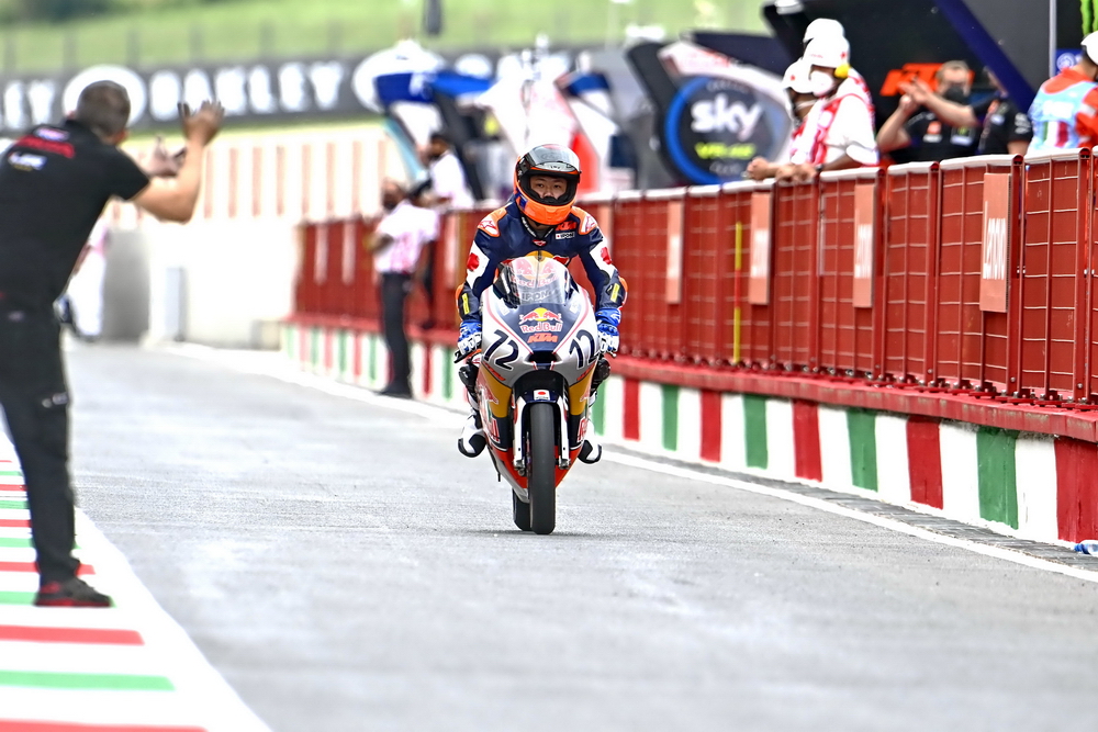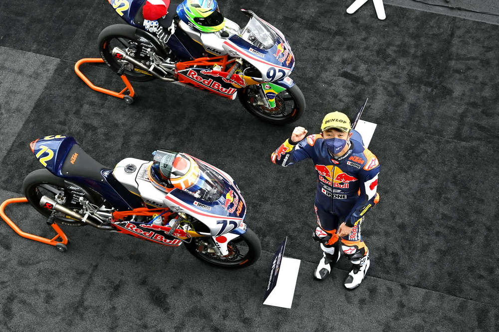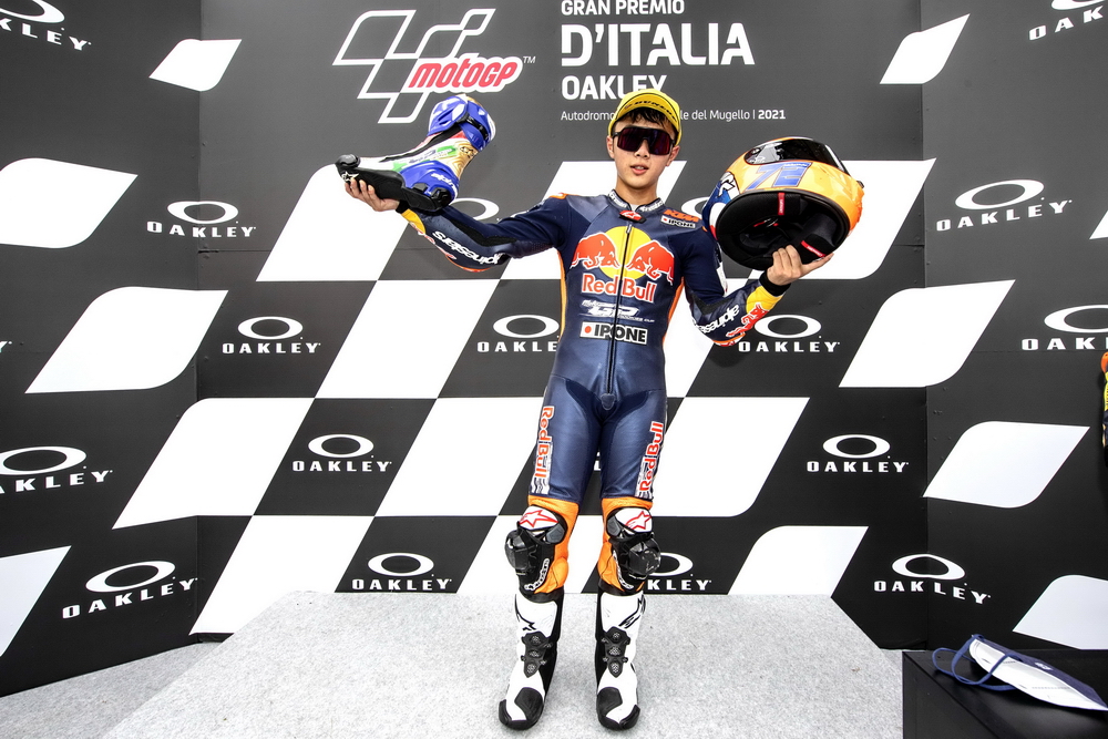 下面的圖片,2021' MotoGP 紅牛新秀杯意大利站比賽中的古里太陽(資料圖片)。