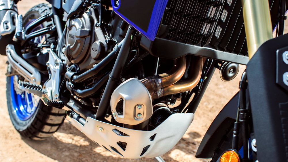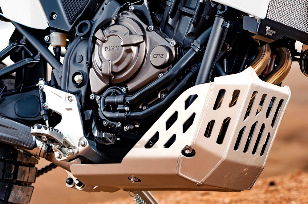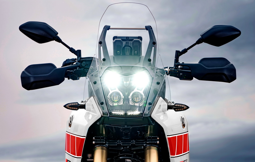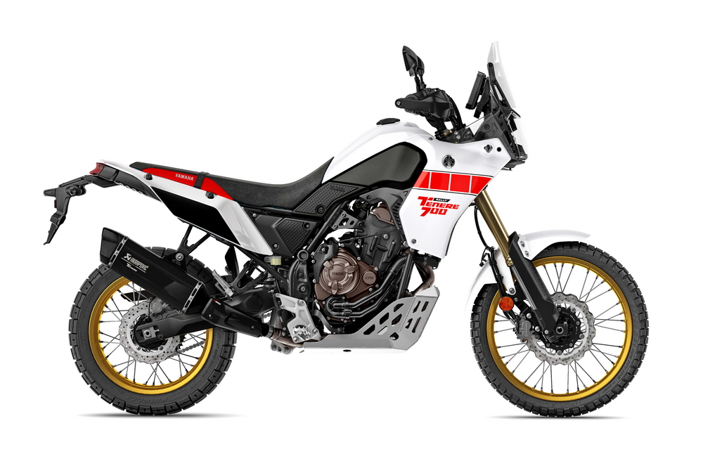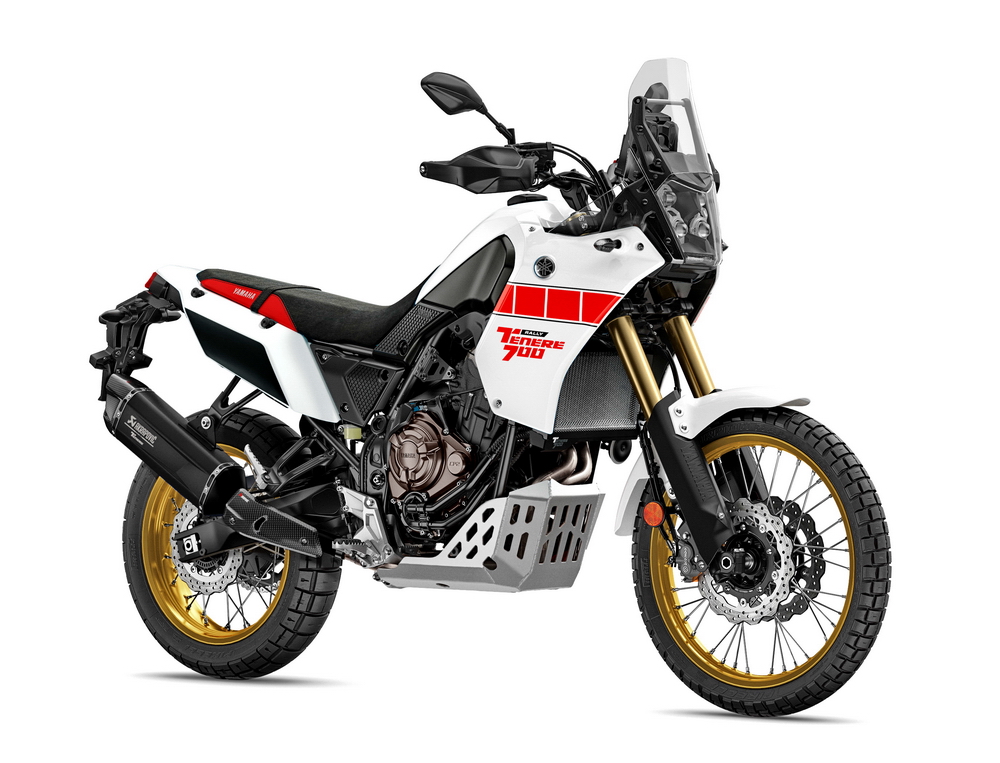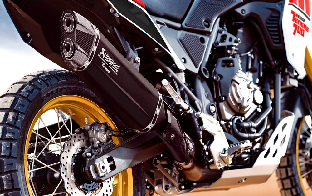 而 XTZ700 Tenere Rally “ 泰納爾 ” 拉力版是在標(biāo)準(zhǔn)版的基礎(chǔ)上,換裝了 Akrapovic 阿克拉波維奇排氣管、更厚的鞍座、更小的 LED 彎燈,并加裝了整體式設(shè)計的發(fā)動機大型底部護(hù)罩,散熱器保護(hù)裝置、膝部站立時所需的護(hù)墊。