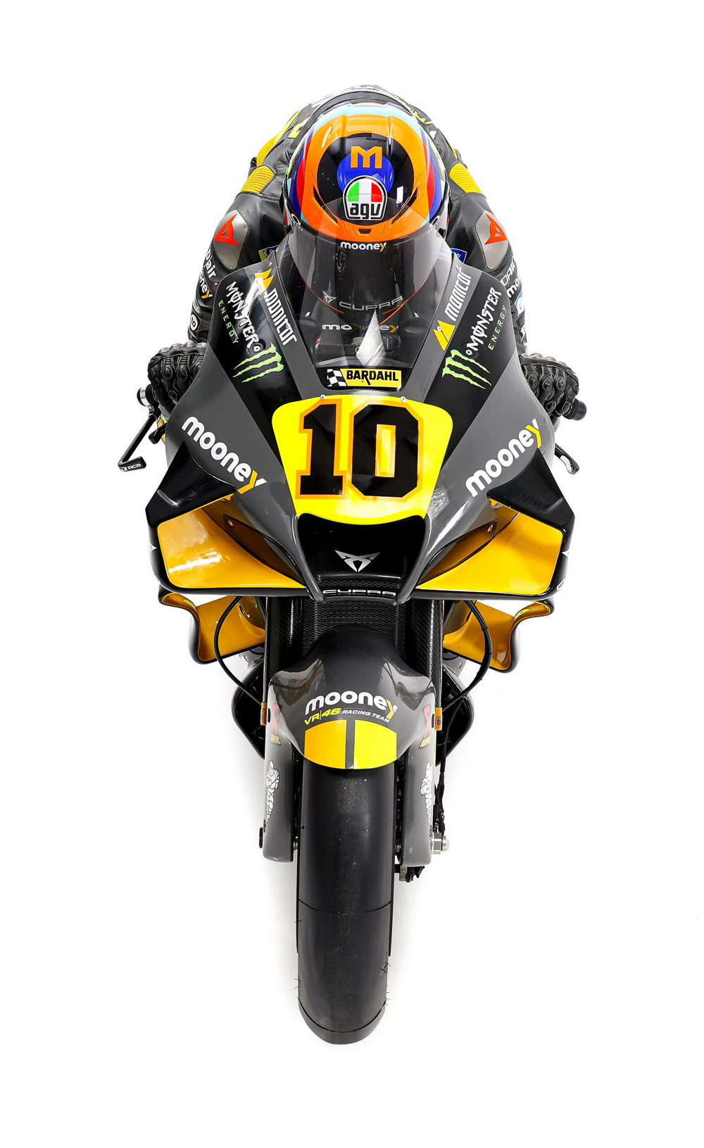 VR46 車隊(duì)今年將參加 MotoGP 和 Moto2 兩個(gè)級(jí)別的比賽,車手全部來自意大利:MotoGP 級(jí)別的車手分別是 10 號(hào)車馬里尼(Luca Marini)和 72 號(hào)車的貝澤奇(Marco Bezzecchi),Moto2 級(jí)別的車手分別是 13 號(hào)車的維蒂(Celestino Vietti)和 28 號(hào)車的安東里尼(Niccolo Antonelli)。