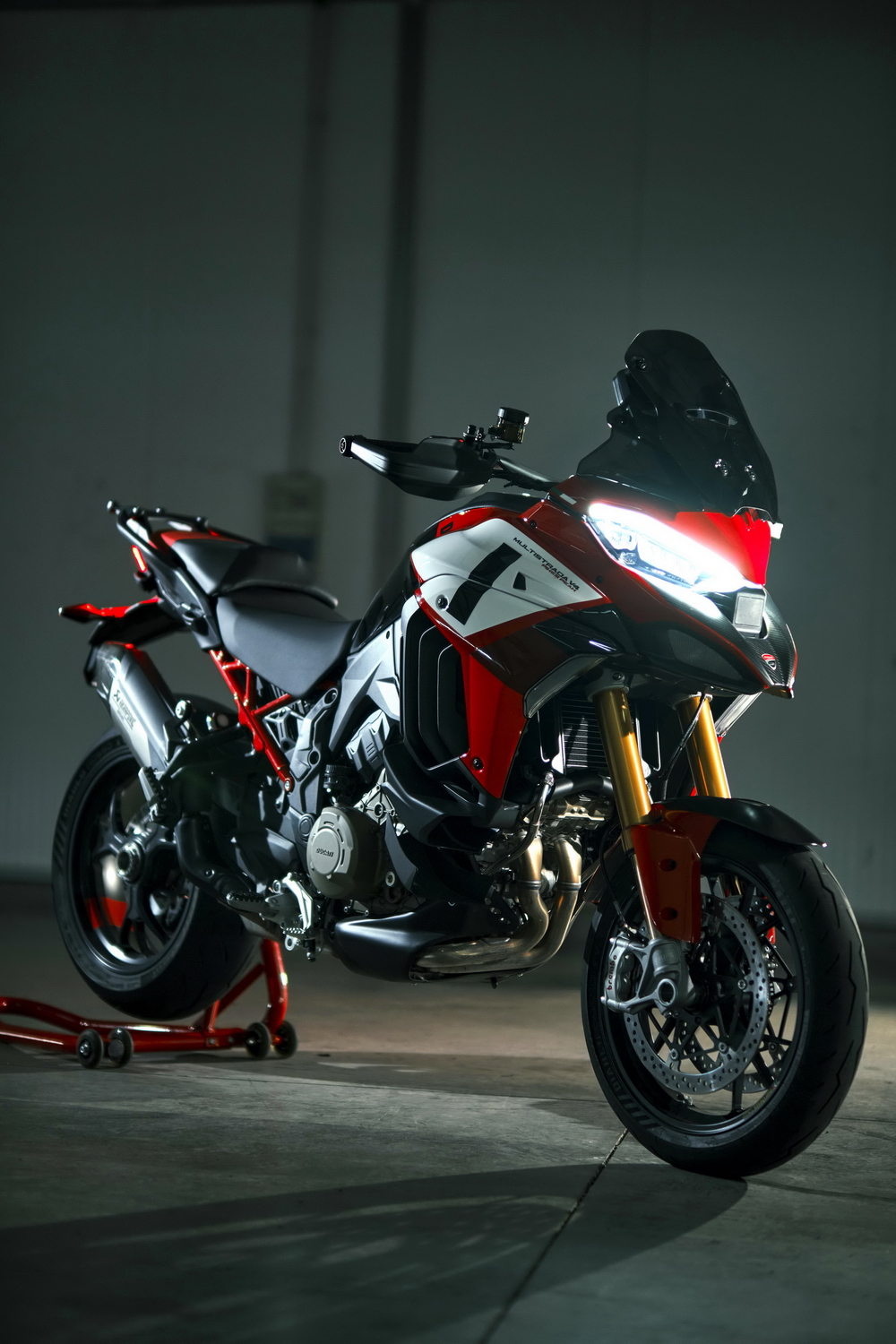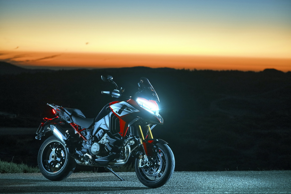 車體使用一副鋁合金制的承載式車架、后單搖臂,數(shù)字式的儀表板,前后 17 英寸的輪框,以及大量的電子控制裝備。去年的發(fā)布之初,Multistrada V4 有標準型、Multistrada V4 S、Multistrada V4 S Sport 三個版本,不同版本之間,配置狀態(tài)各有不同。