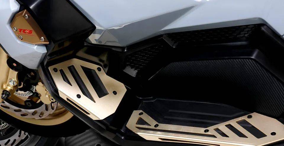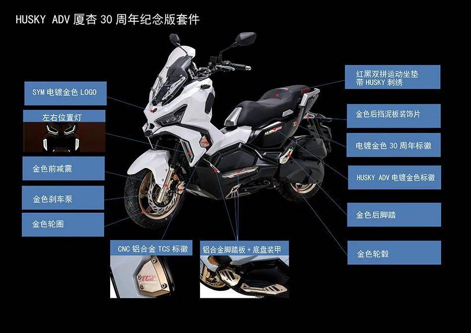HUSKY ADV這次還有廈杏SYM 30周年紀念版套件,在腳踏、車身側(cè)蓋、車頭LOGO等處都換上搶眼的金色CNC套件取代,整臺車看起來金光閃閃,騎在路上絕對是眾人目光焦點。